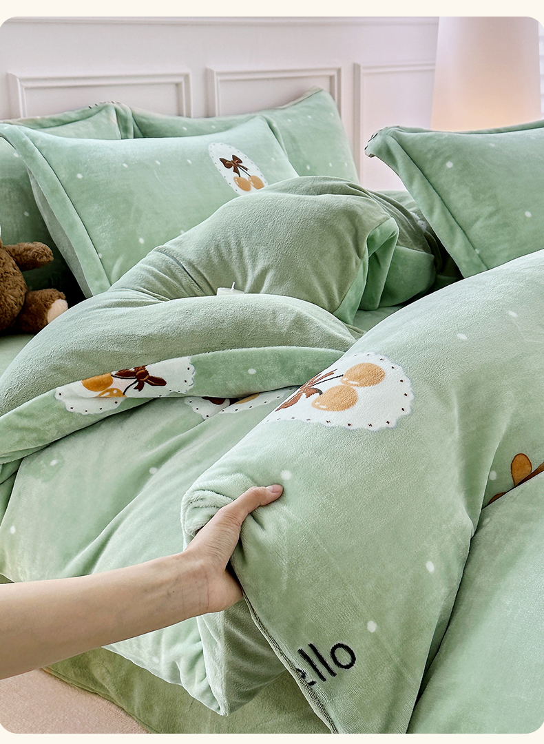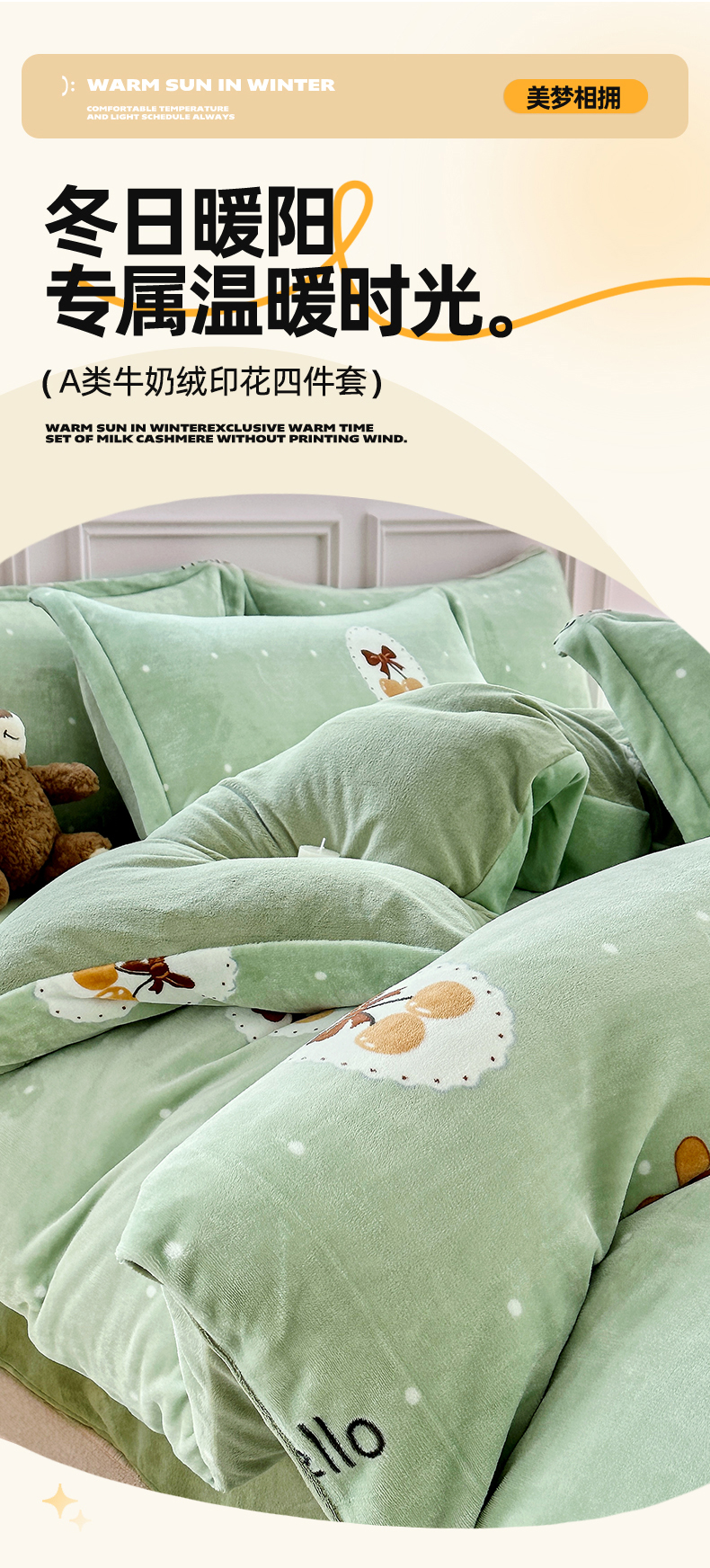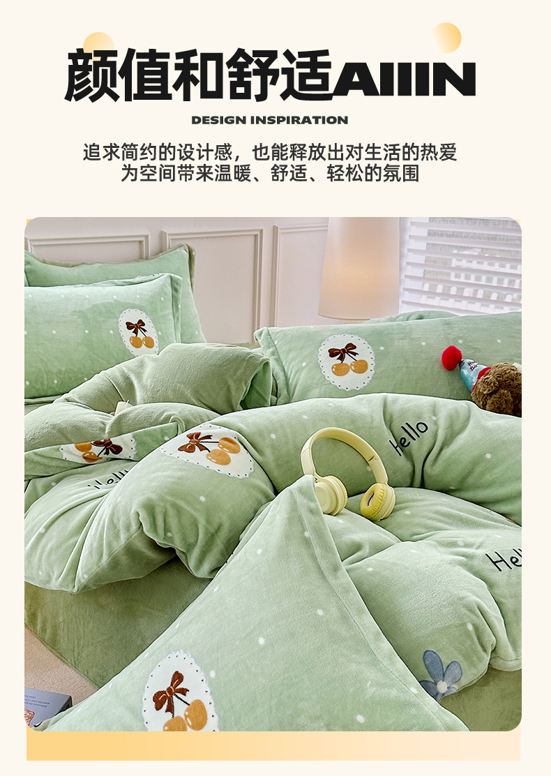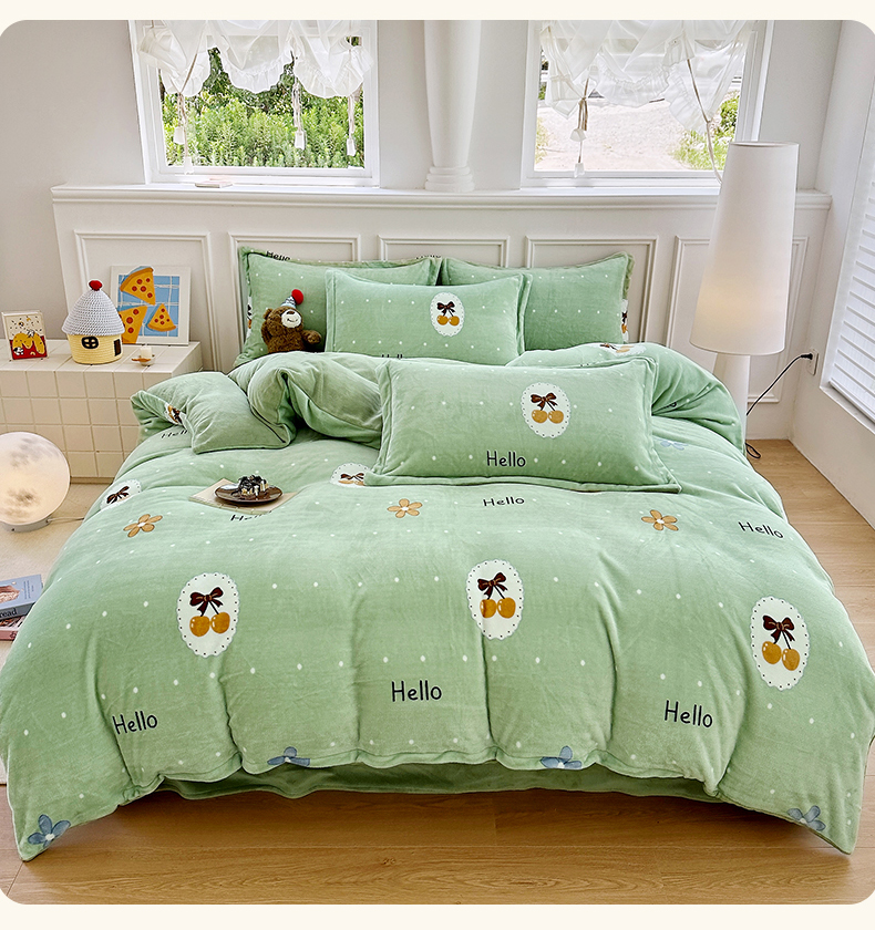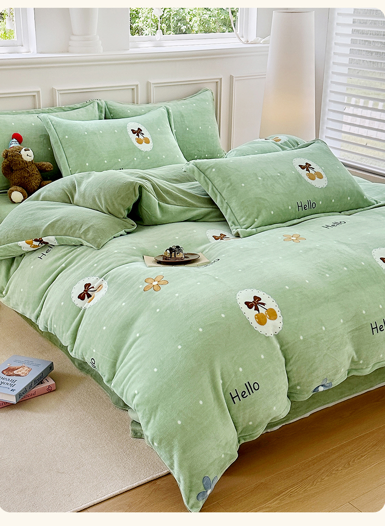当前位置: 91家纺网 > 商品网购 > 床品套件 > 四件套 > 牛奶绒四件套 > 家贝爱 2025新款A类牛奶绒印花四件套 波点樱桃