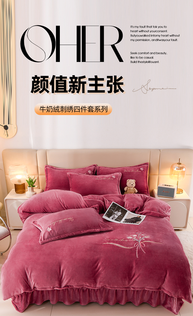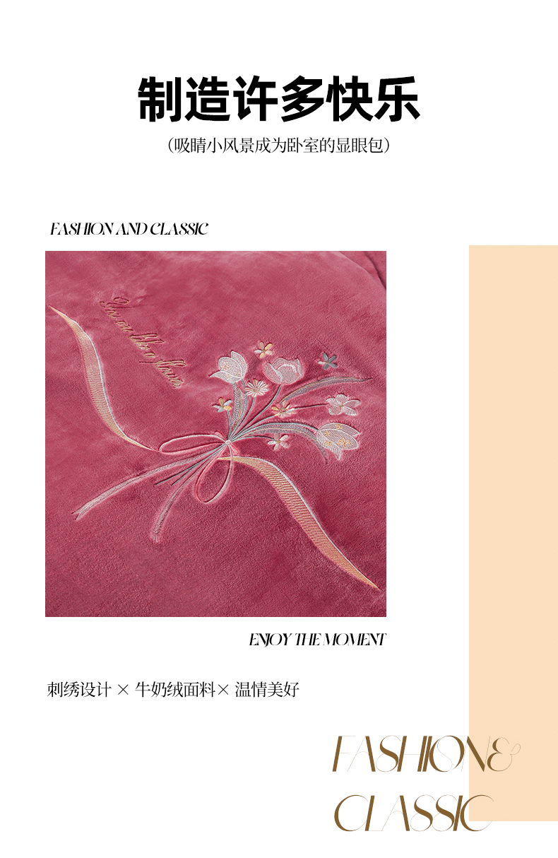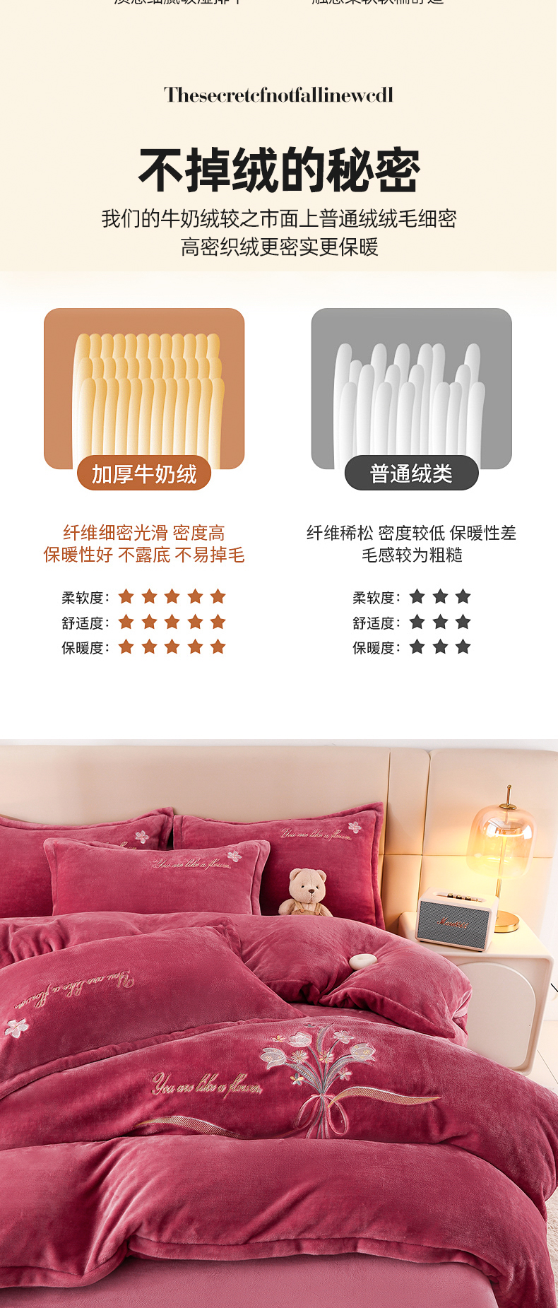 绣女坊 2025新款高克重牛奶绒刺绣四件套 郁金香-豆沙