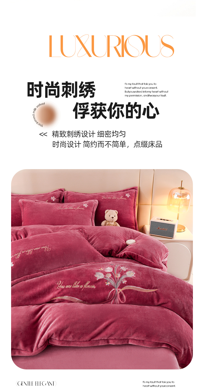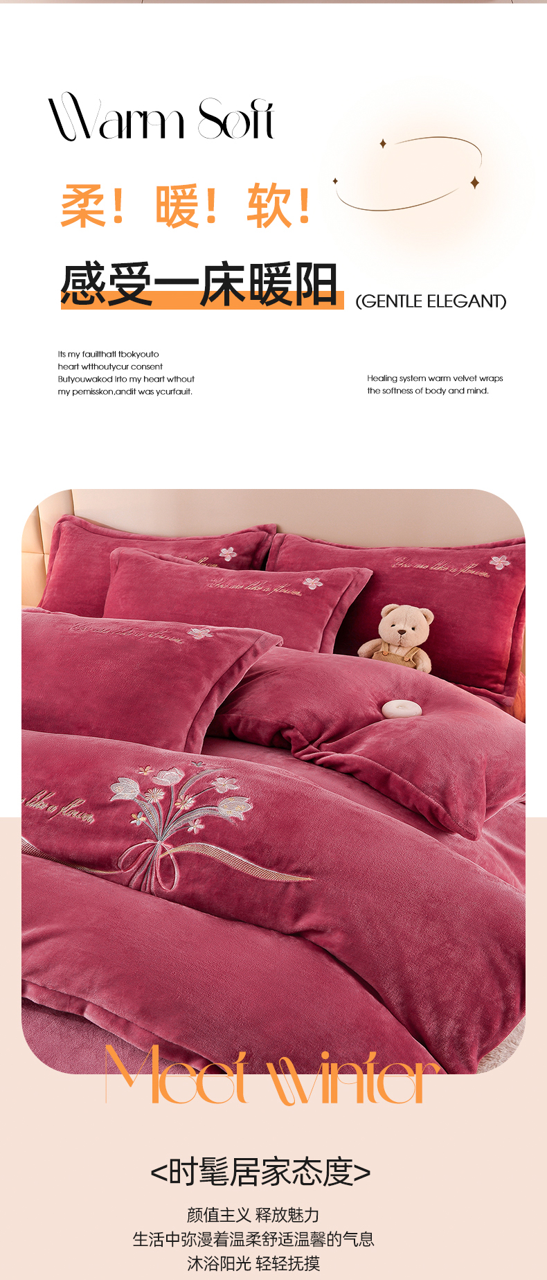 (总)绣女坊 2025新款高克重牛奶绒刺绣四件套,郁金香-爱玛橙,郁金香-豆沙,郁金香-灰,郁金香-酒红,郁金香-孔雀蓝,郁金香-玫粉,郁金香-嫩绿,郁金香-天蓝,郁金香-香芋紫