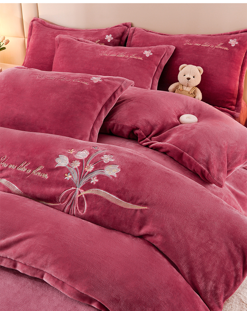 商品名称:绣女坊 2025新款高克重牛奶绒刺绣四件套 郁金香-豆沙