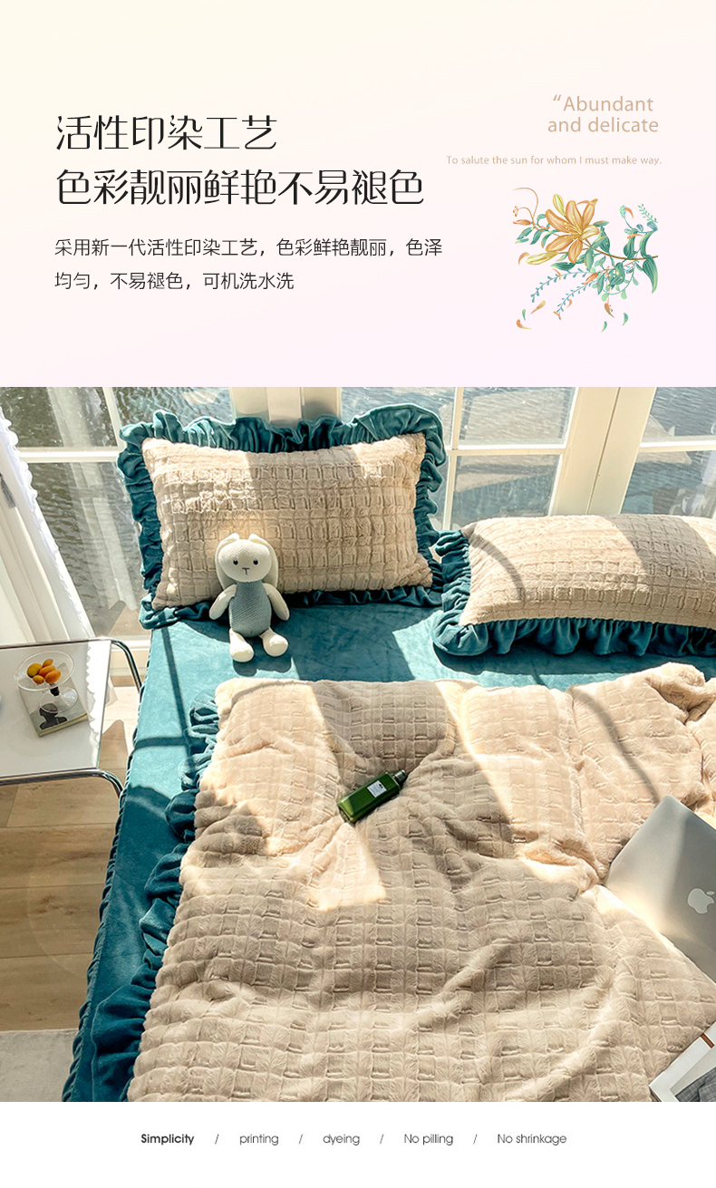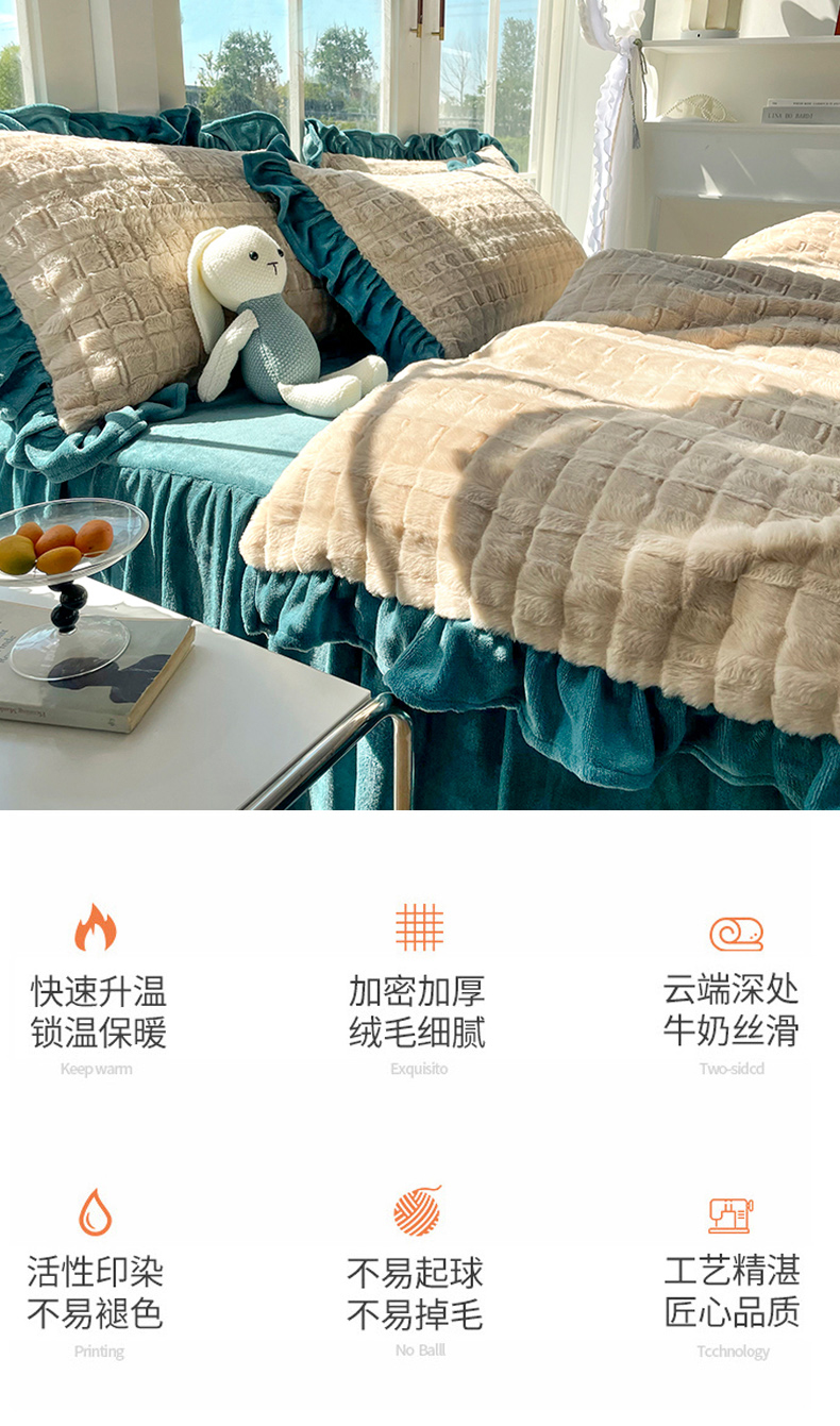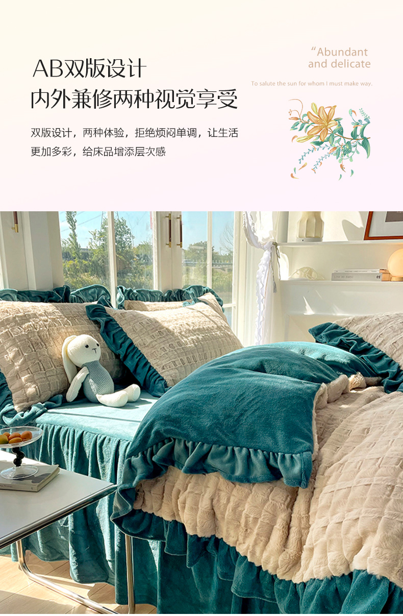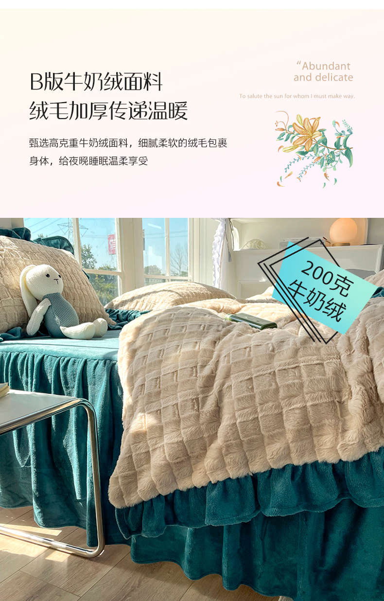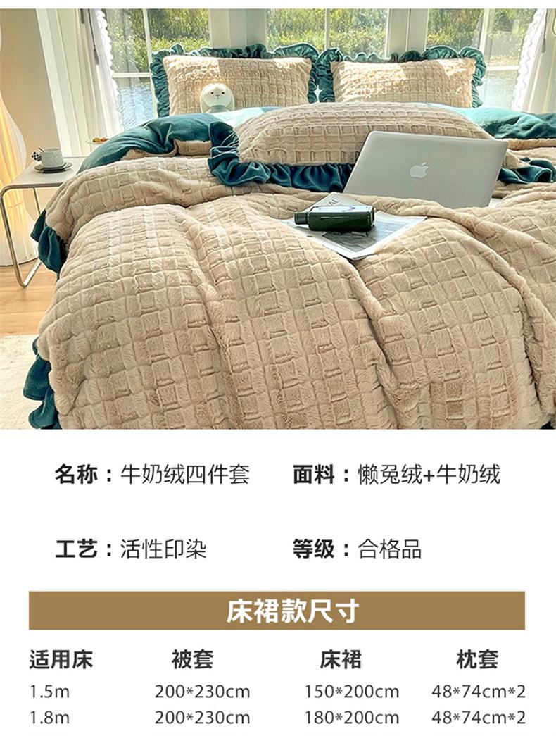 商品名称:睡美人 2025新款韩版方块兔绒牛奶绒床裙公主款四件套 方块兔绒-星空兰