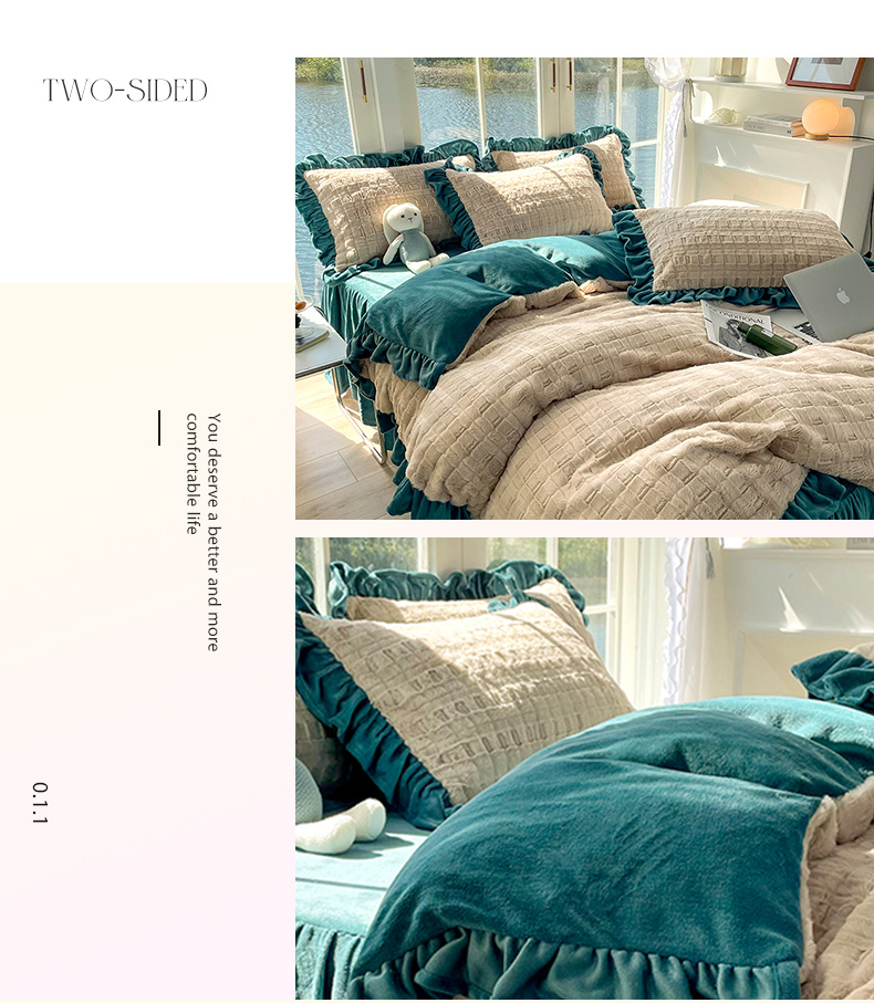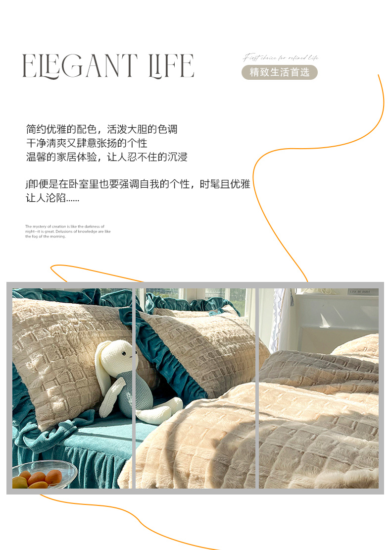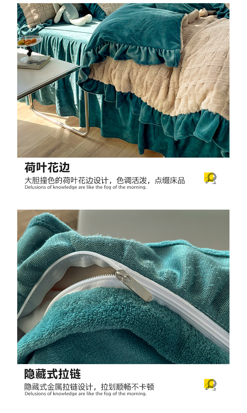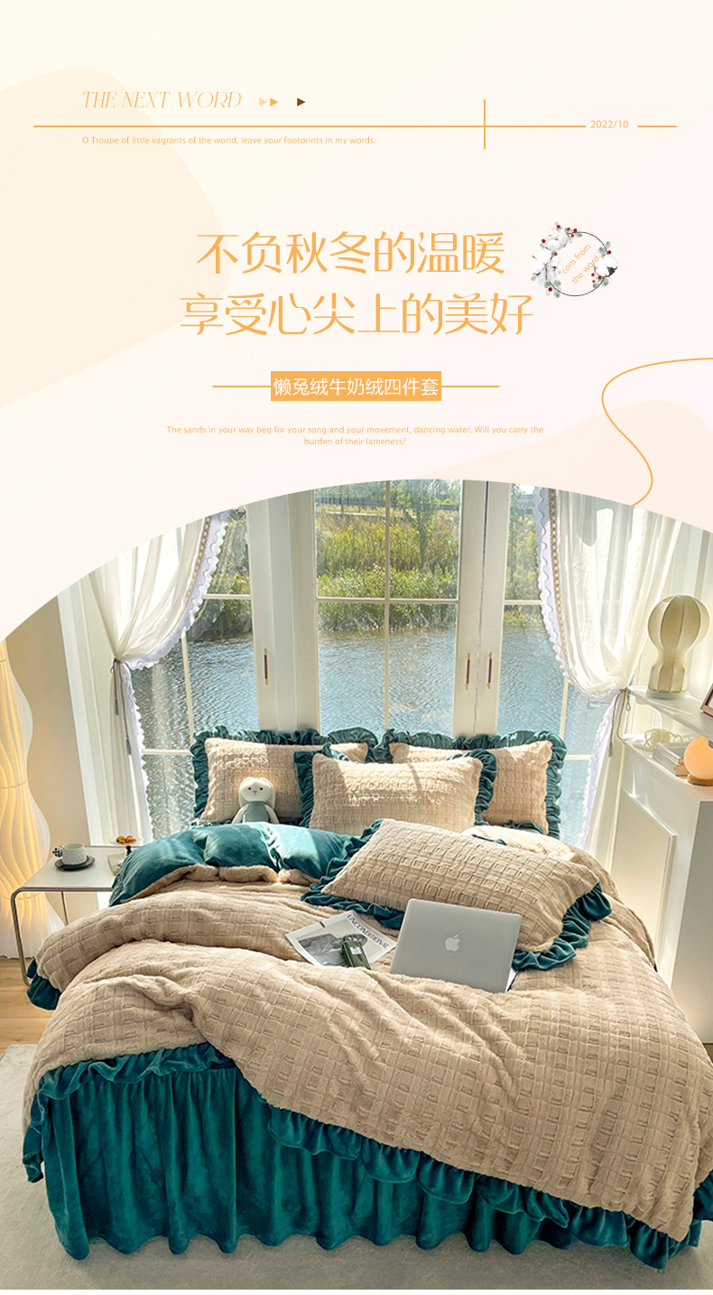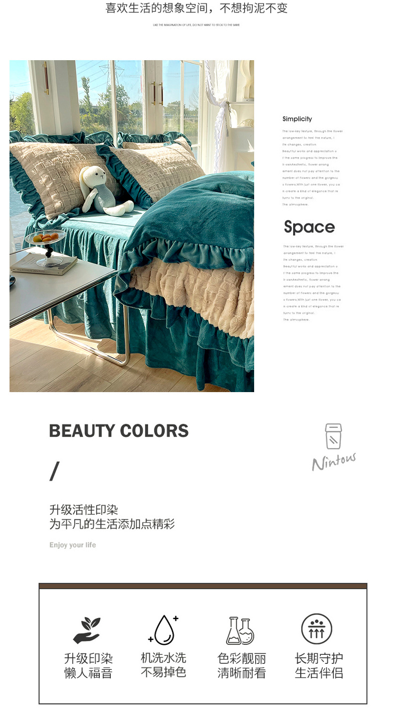 商品名称:睡美人 2025新款韩版方块兔绒牛奶绒床裙公主款四件套 方块兔绒-星空兰
