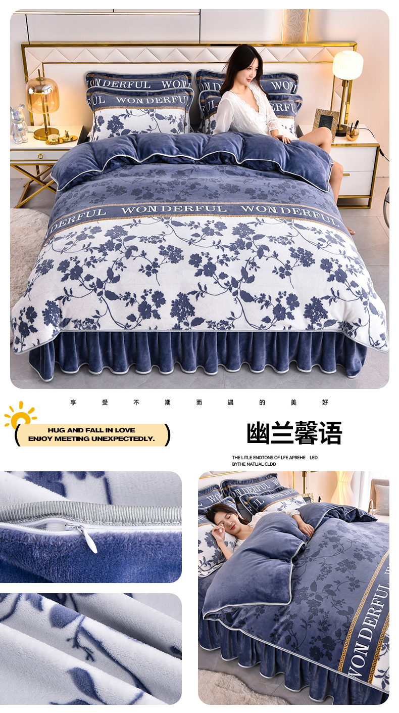 (总)启扬 2025直播爆款新款8.5斤加厚高克重牛奶绒四件套床裙款法莱绒宝宝绒金貂绒,相思叶语-蓝,相思叶语-灰,安格斯,幸运相伴,浅夏时光,希亚-灰,调皮熊,幽兰馨语,花漫里,暗香花语,茉莉粉,嫣然,春意盎然,蝶舞花语,国色天香,花团锦簇,花香醉梦,花颜,花枝招展,简约格调,经典生活,美好时光,倾城之恋,条纹空间,心想事橙,休闲人生,英伦时尚,遇见,缘定今生,艾理斯