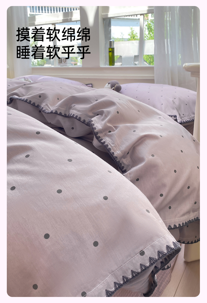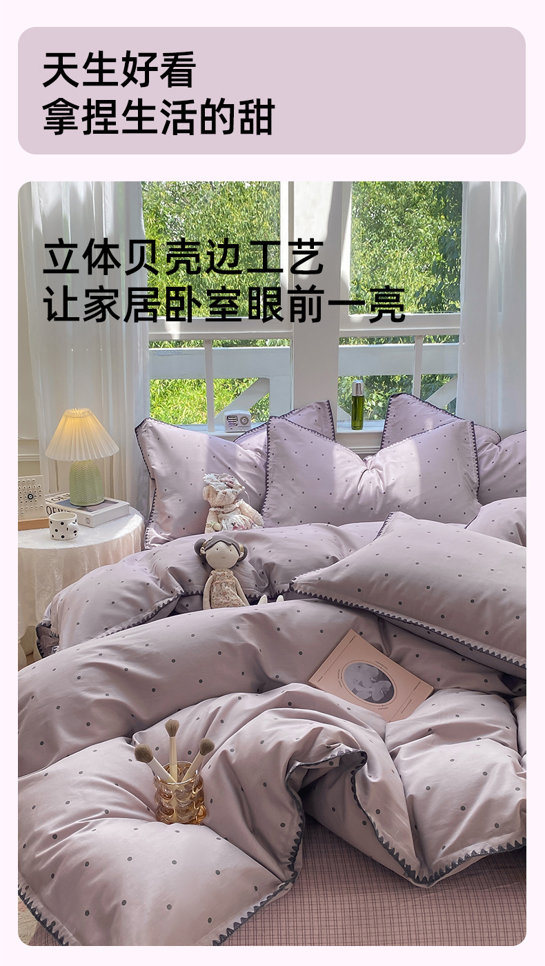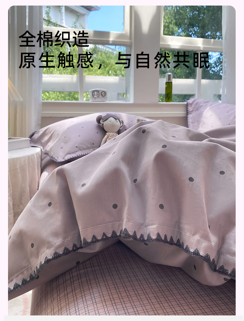 当前位置: 91家纺网 > 商品网购 > 床品套件 > 四件套 > 全棉普通四件套 > 浮光家居 2025新款全棉纯棉贝壳边四件套 小黑点点紫