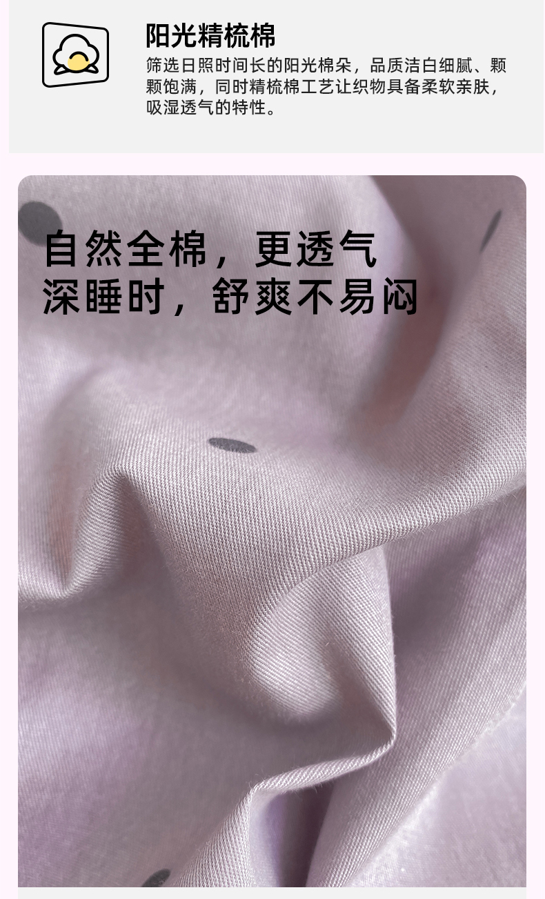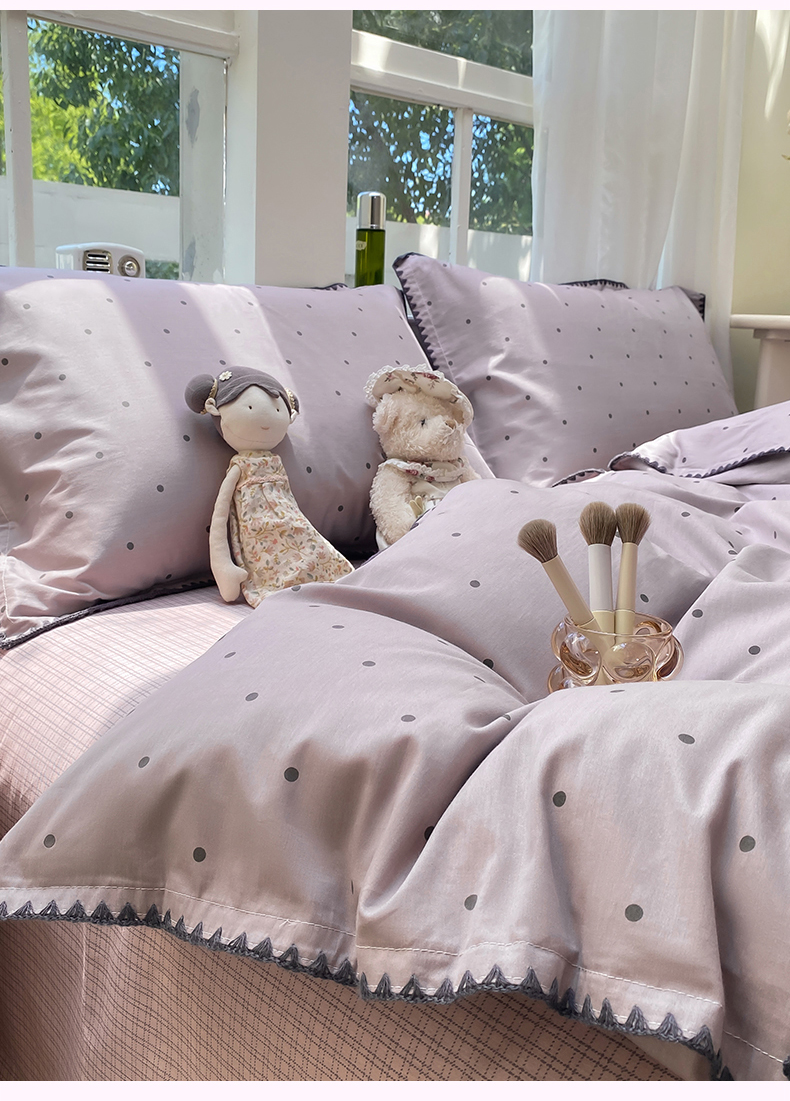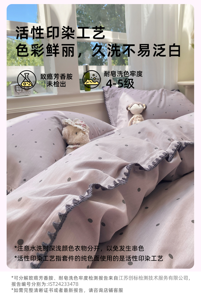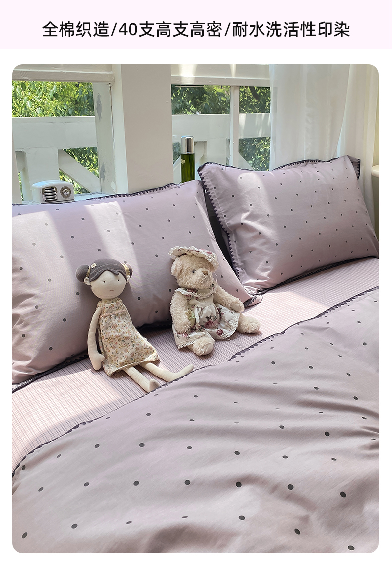 当前位置: 91家纺网 > 商品网购 > 床品套件 > 四件套 > 全棉普通四件套 > 浮光家居 2025新款全棉纯棉贝壳边四件套 小黑点点紫