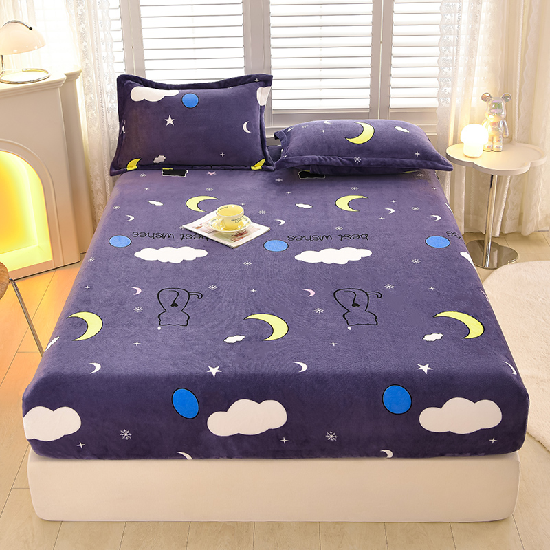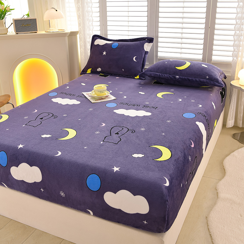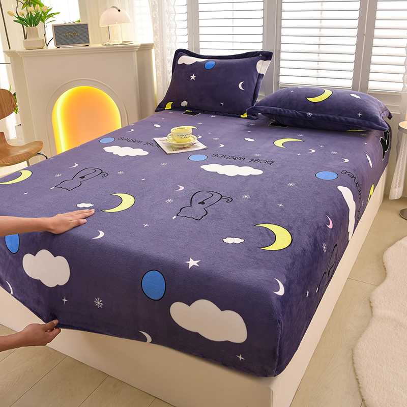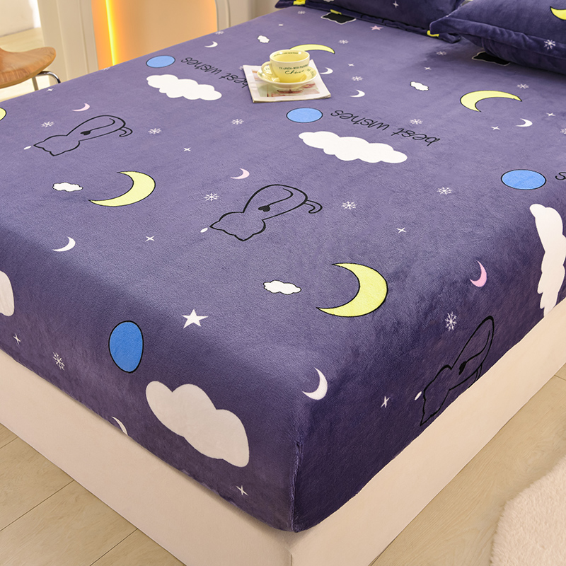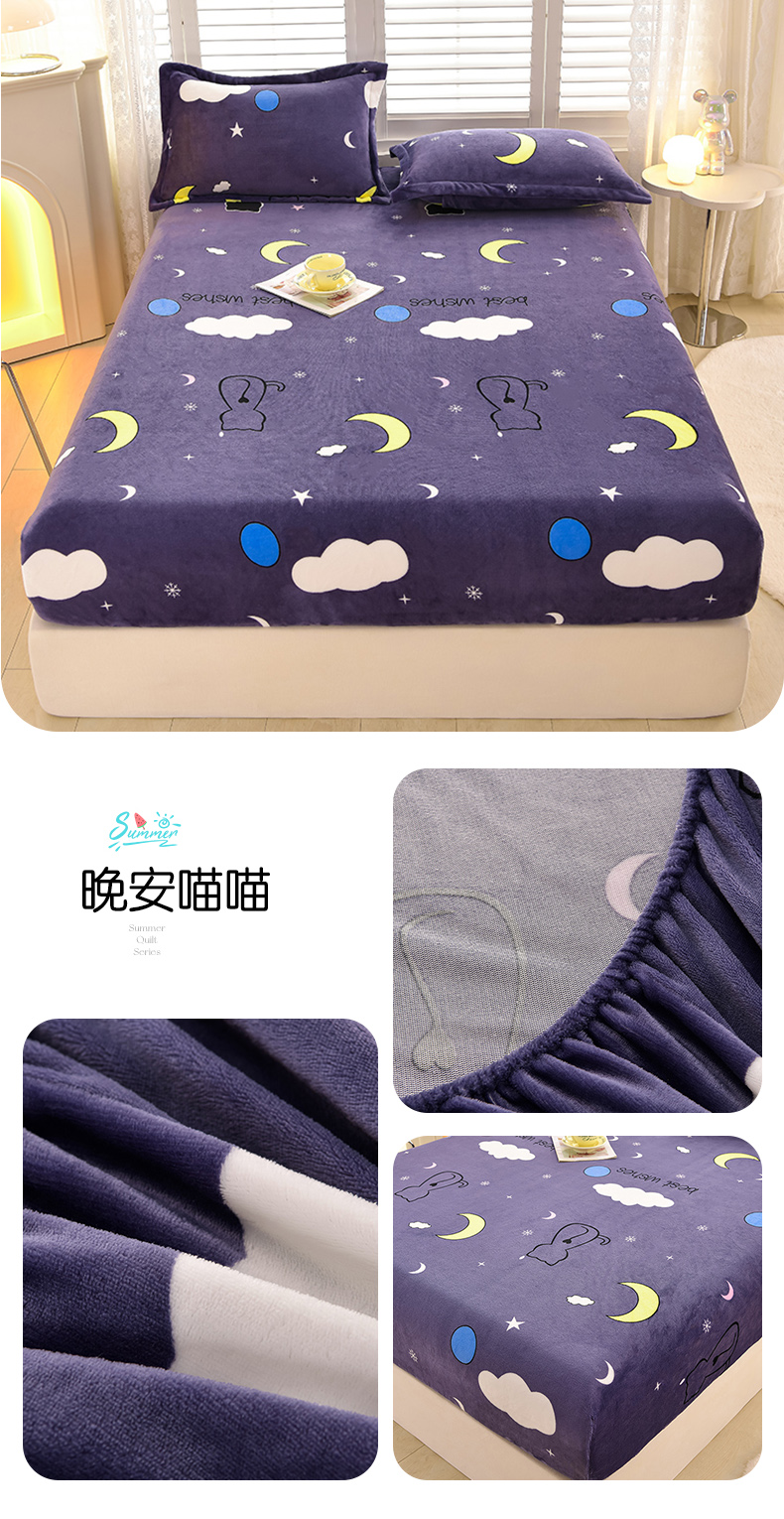 圣楚家纺 2025新款牛奶绒床笠 晚安喵喵
