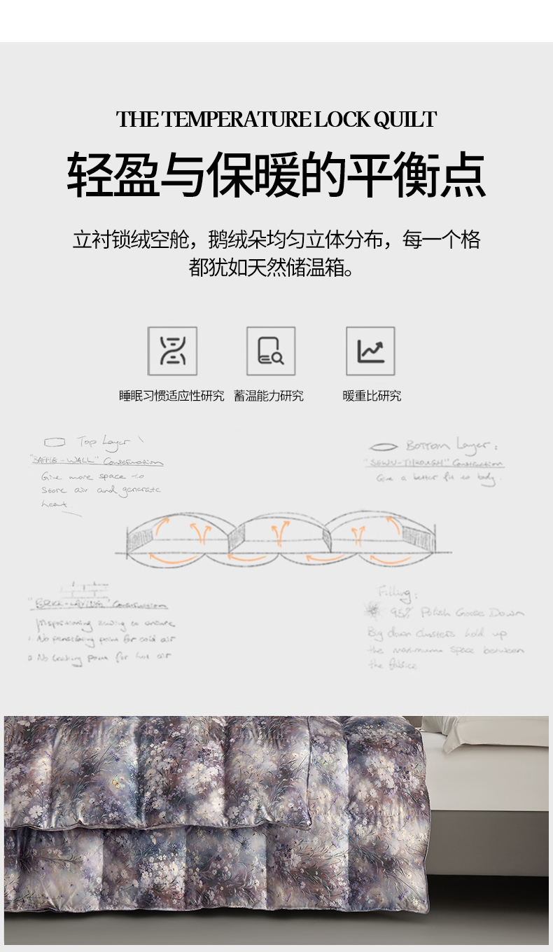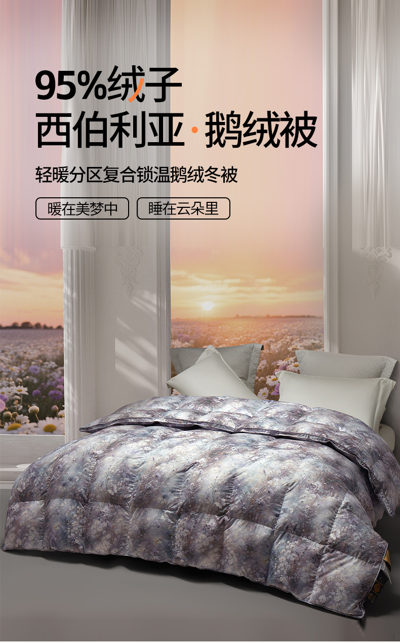 • 91家纺网 家纺一手货源 找家纺 织梦人羽绒工厂店 2025新款高蓬松羽绒被95鹅绒大牌同款花型 春风浅浅