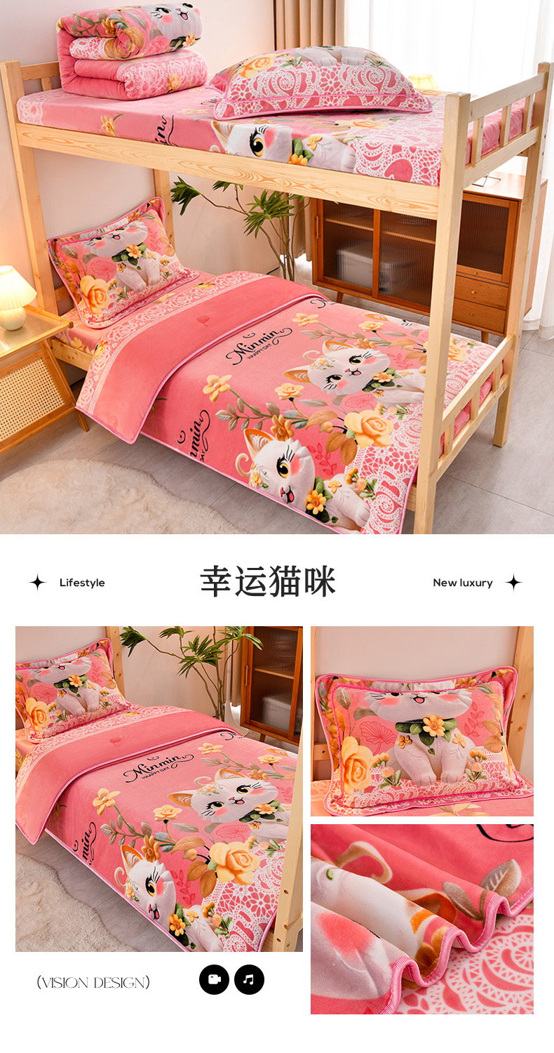 商品名称:牵梦萦 2025新款牛奶绒学生三件套 幸运猫咪