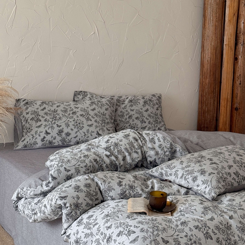 于果 2025新款全棉纯棉色织提花四件套 花影