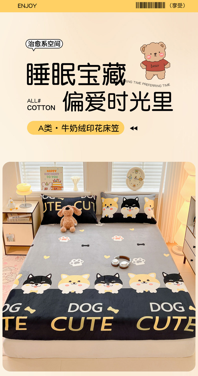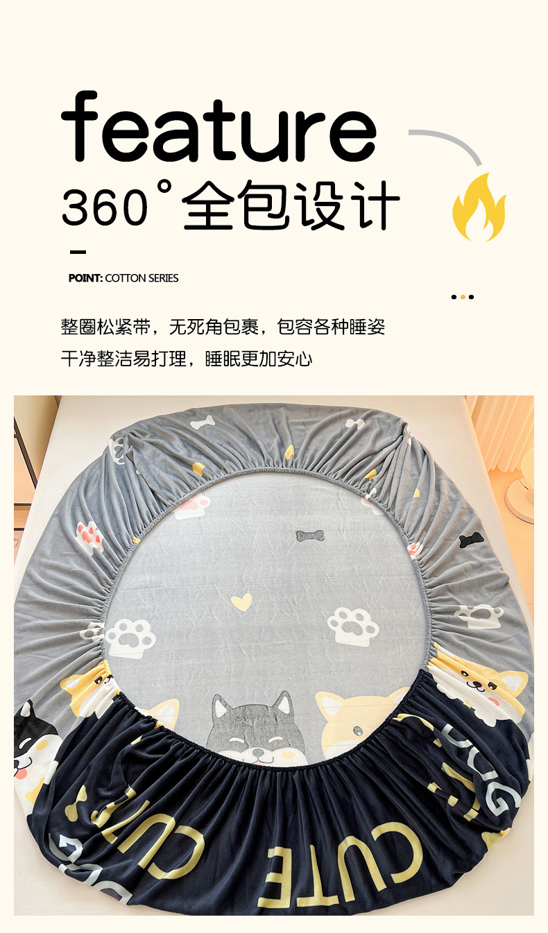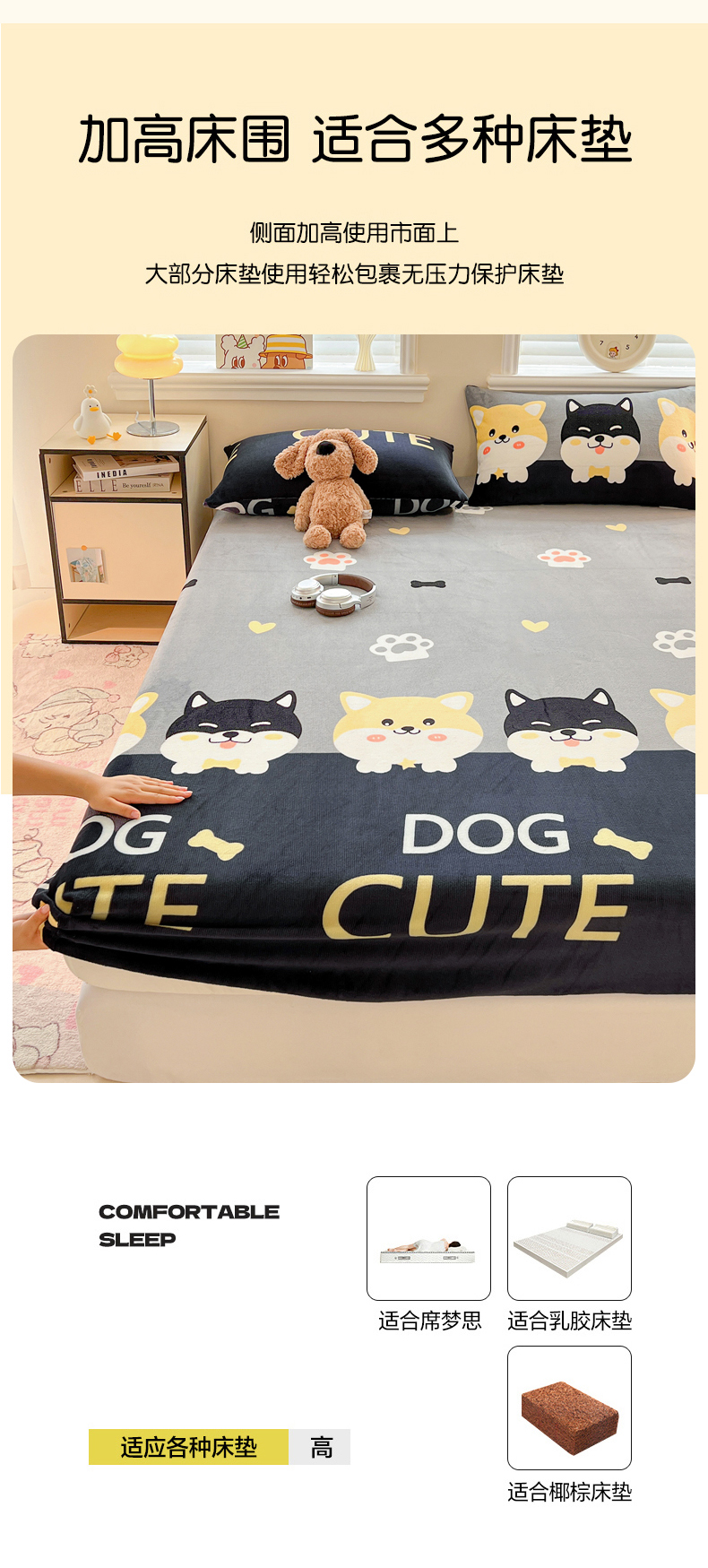 富馨莱2025年新款牛奶绒印花床笠 柯基黑
