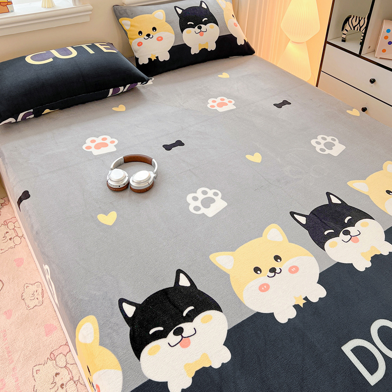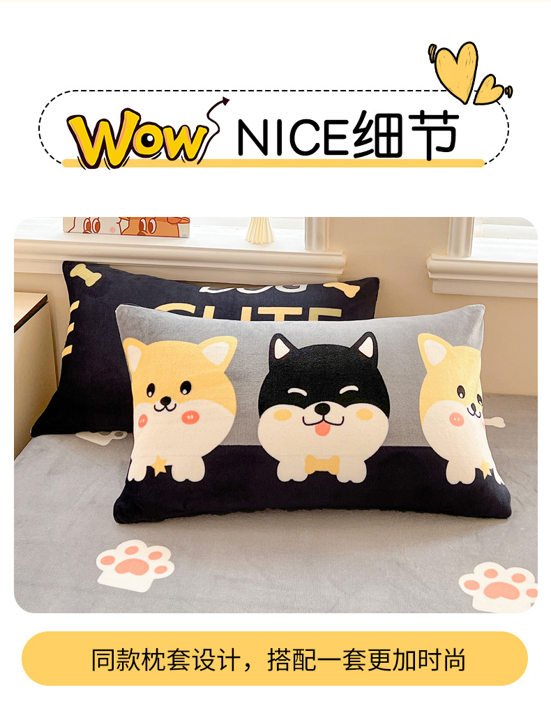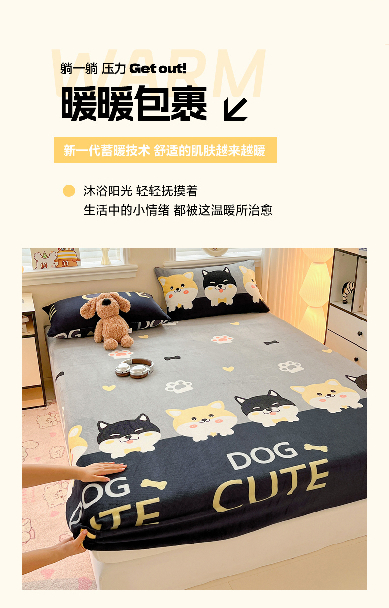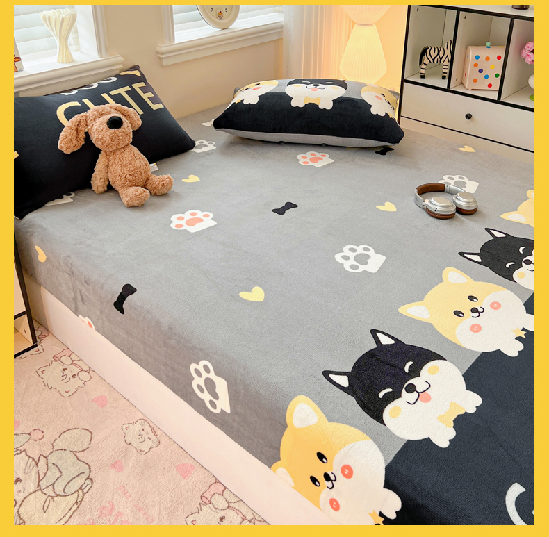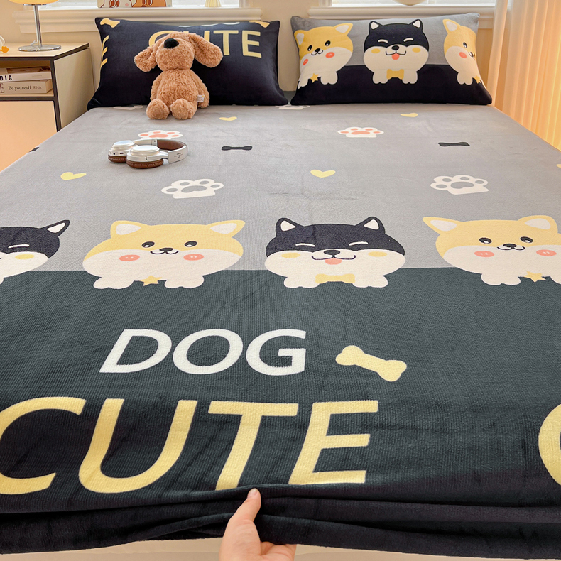 富馨莱2025年新款牛奶绒印花床笠 柯基黑