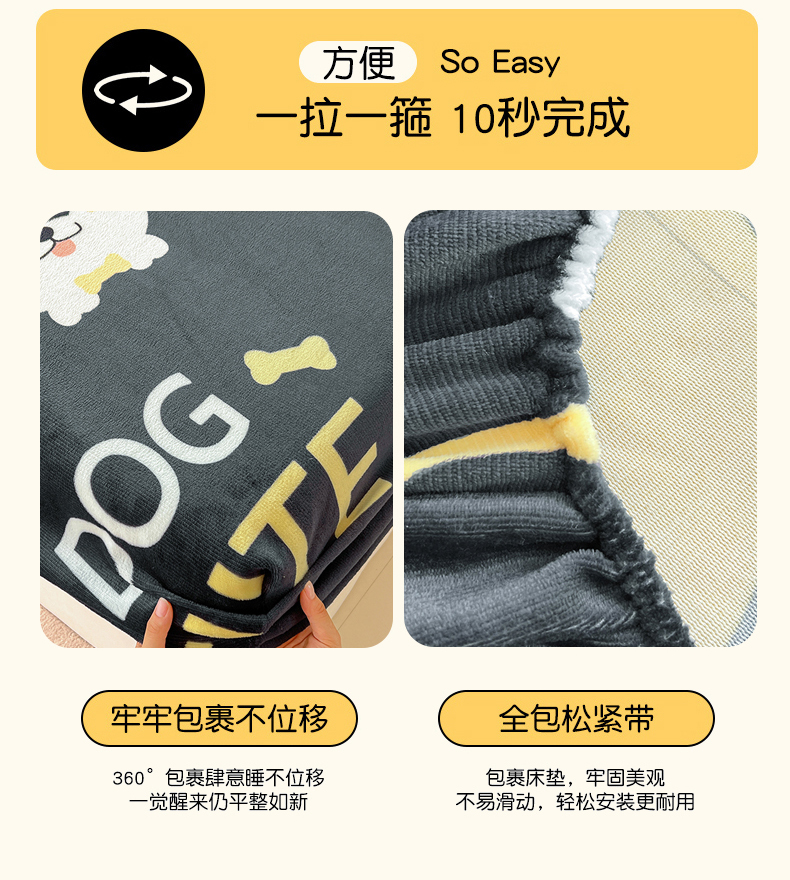 • 91家纺网 家纺一手货源 找家纺 富馨莱2025年新款牛奶绒印花床笠 柯基黑