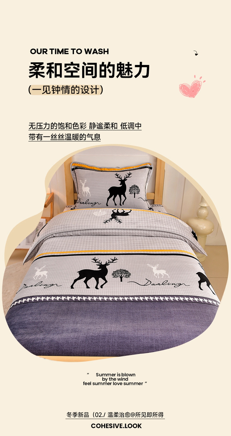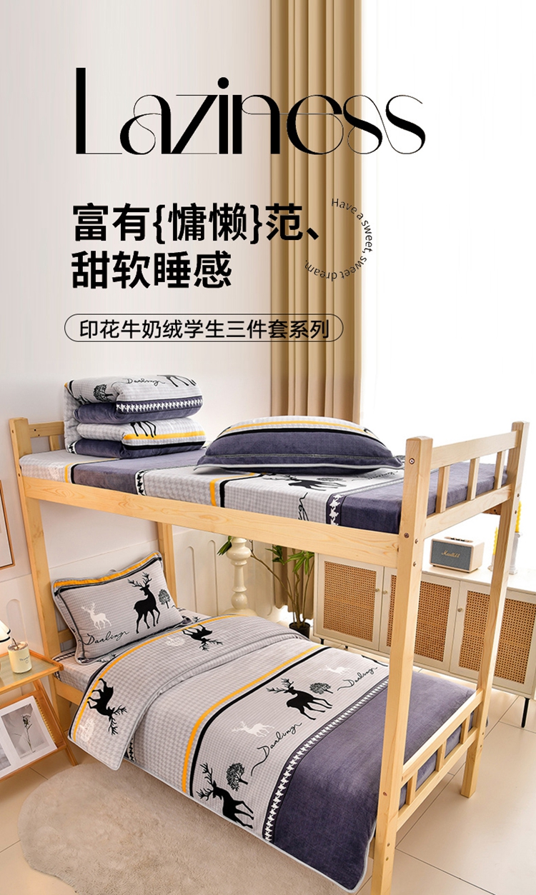 商品名称:(总)馨梦缘2025新款爆款高克重印花牛奶绒法莱绒学生三件套单人床套件
