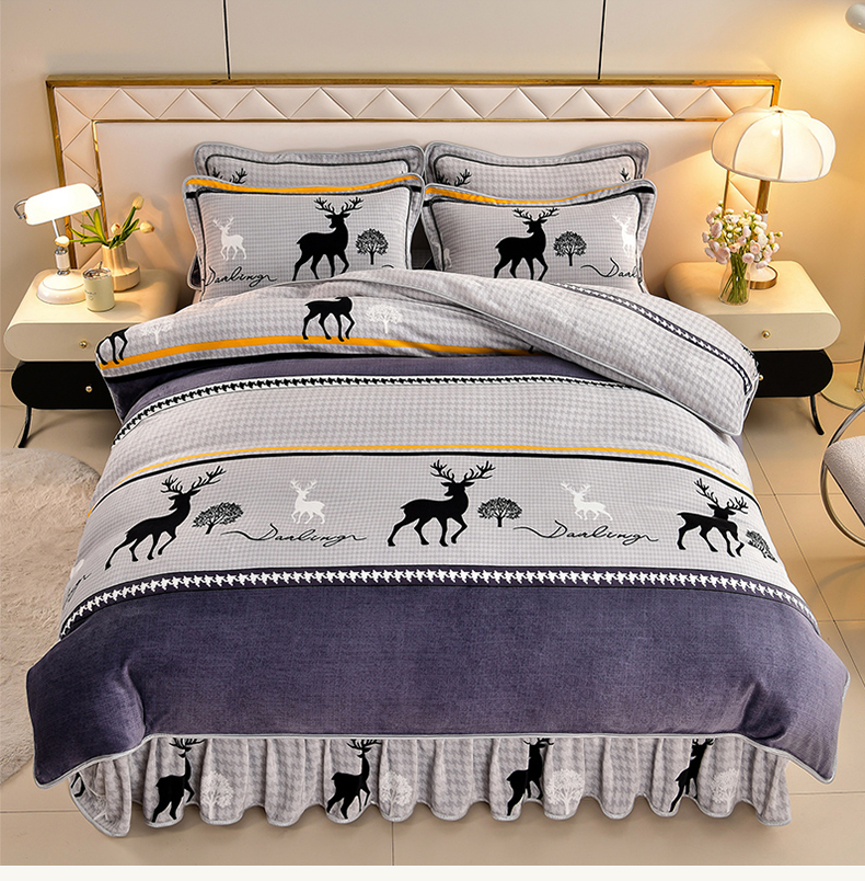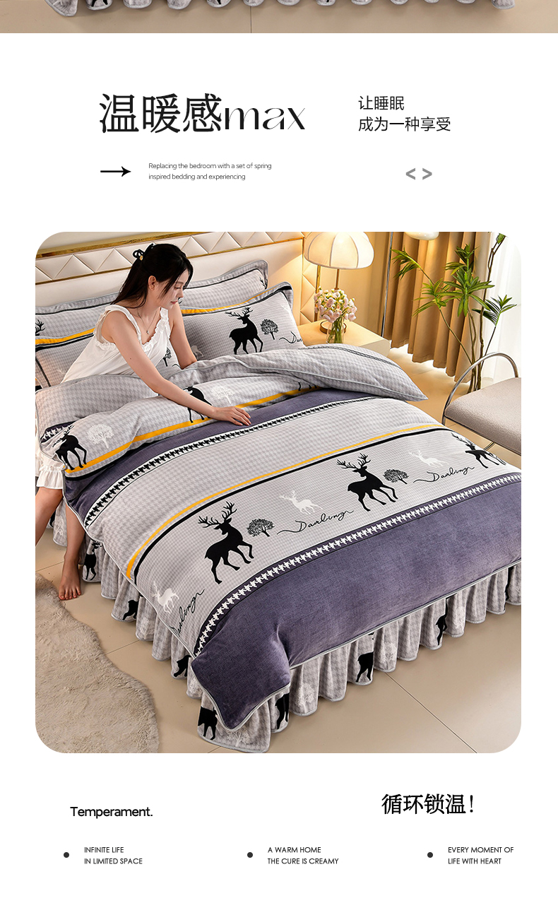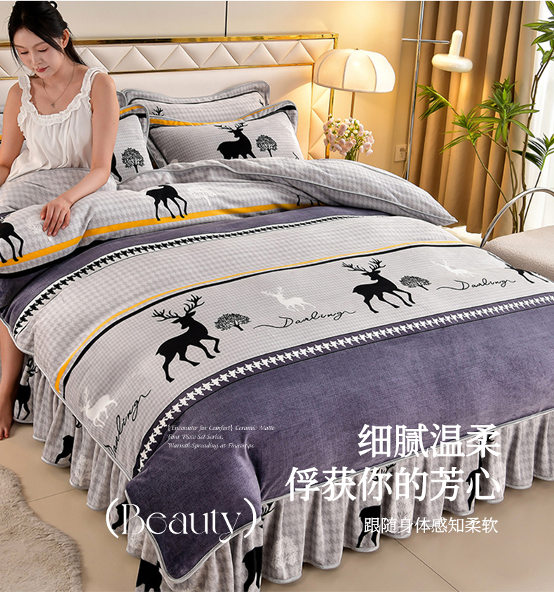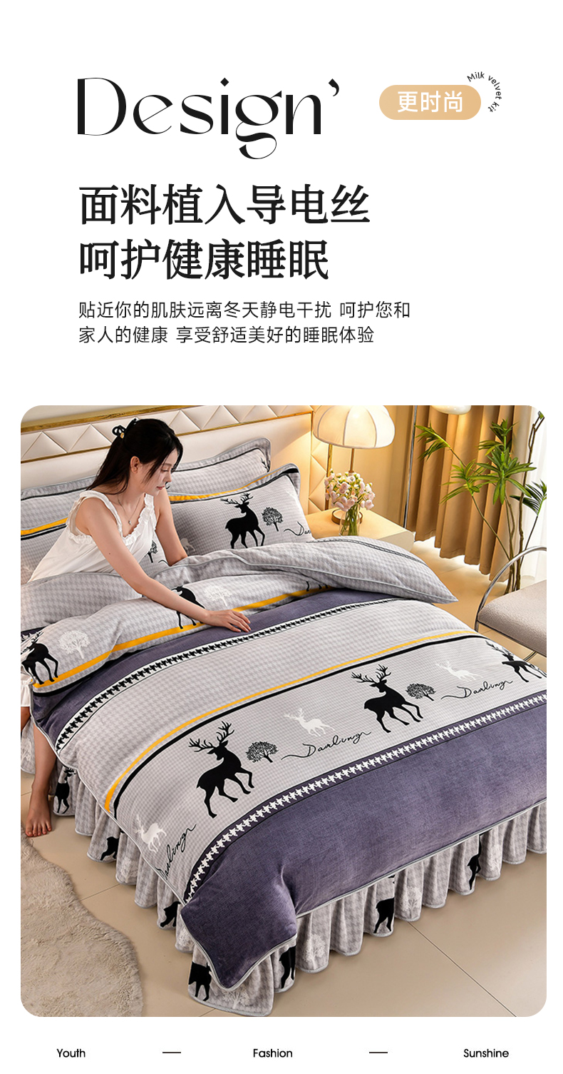 馨梦缘 2025直播爆款8.5斤牛奶绒四件套加厚保暖床裙金貂绒 发财树
