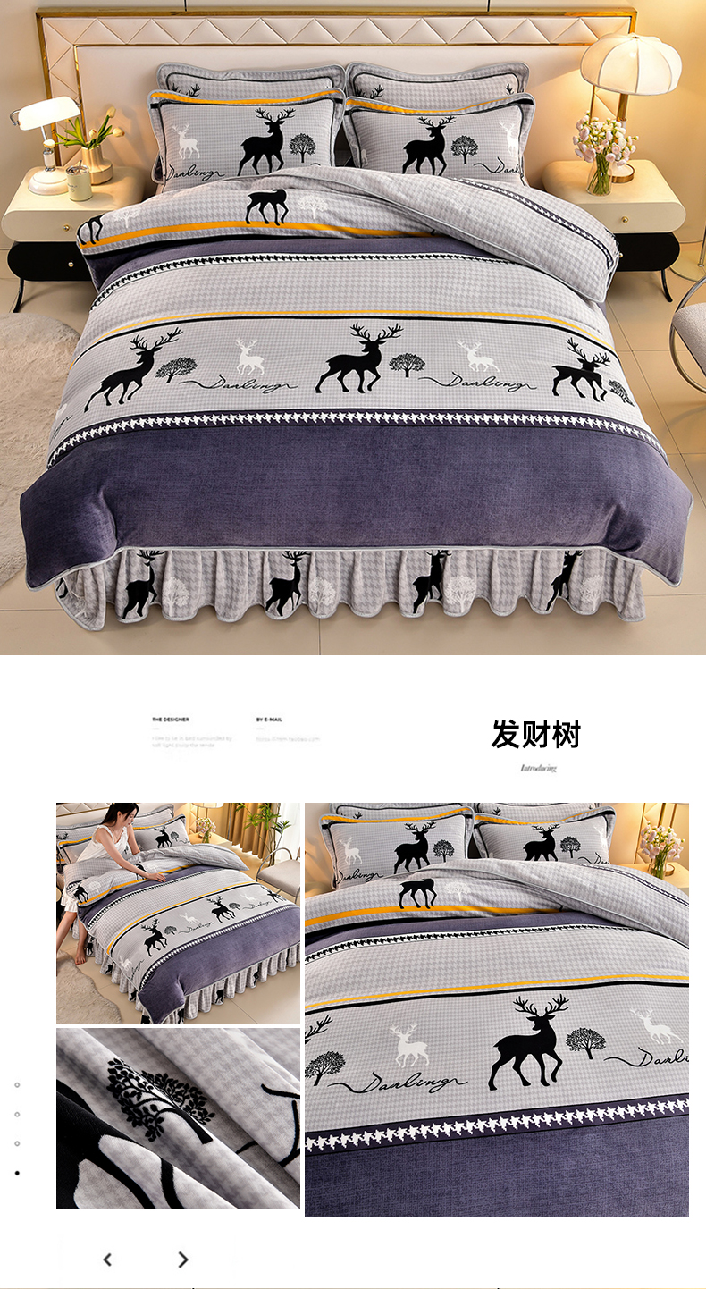 商品名称:馨梦缘 2025直播爆款8.5斤牛奶绒四件套加厚保暖床裙金貂绒 发财树