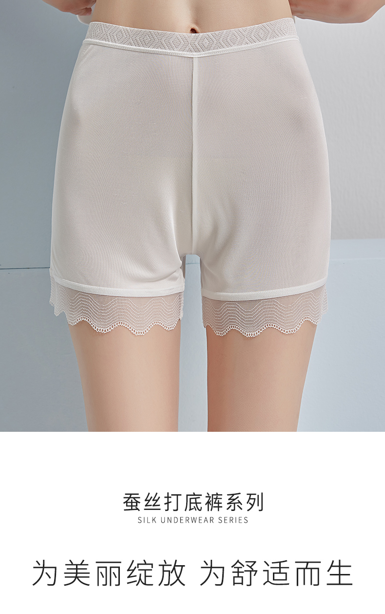 蚕云阁蚕丝家居 2025新款蕾丝花边真丝打底裤 黑色