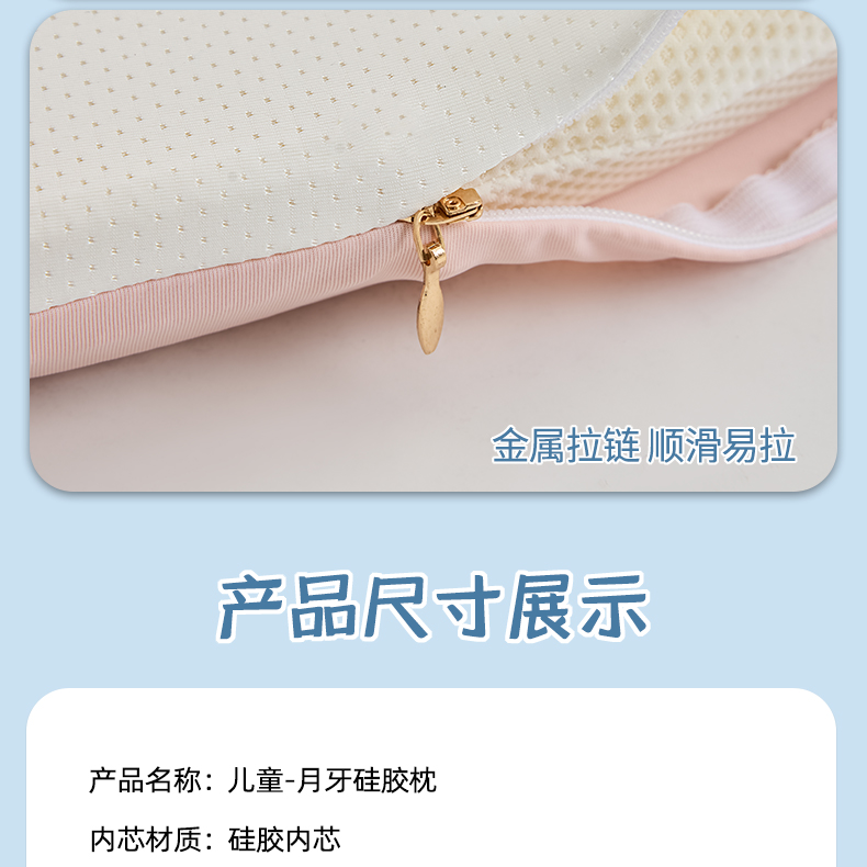 (总)唯爱品 2026新款儿童-月牙硅胶枕枕头枕芯,蓝色,粉色,绿色