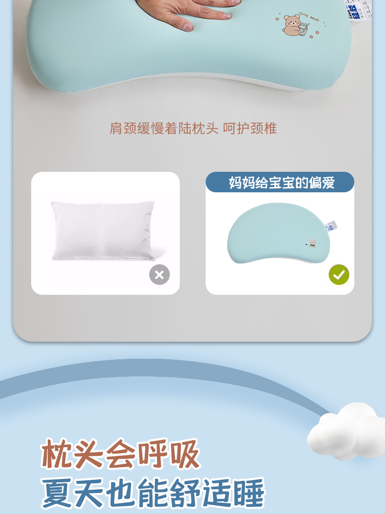 (总)唯爱品 2026新款儿童款萌趣记忆枕枕头枕芯 记忆枕源头工厂,27*45*4cm婴儿枕,27*45*6cm婴儿枕,30*50*5少年枕,30*50*7少年枕,35*55*5青年枕,35*55*7青年枕,枕套蓝,枕套粉