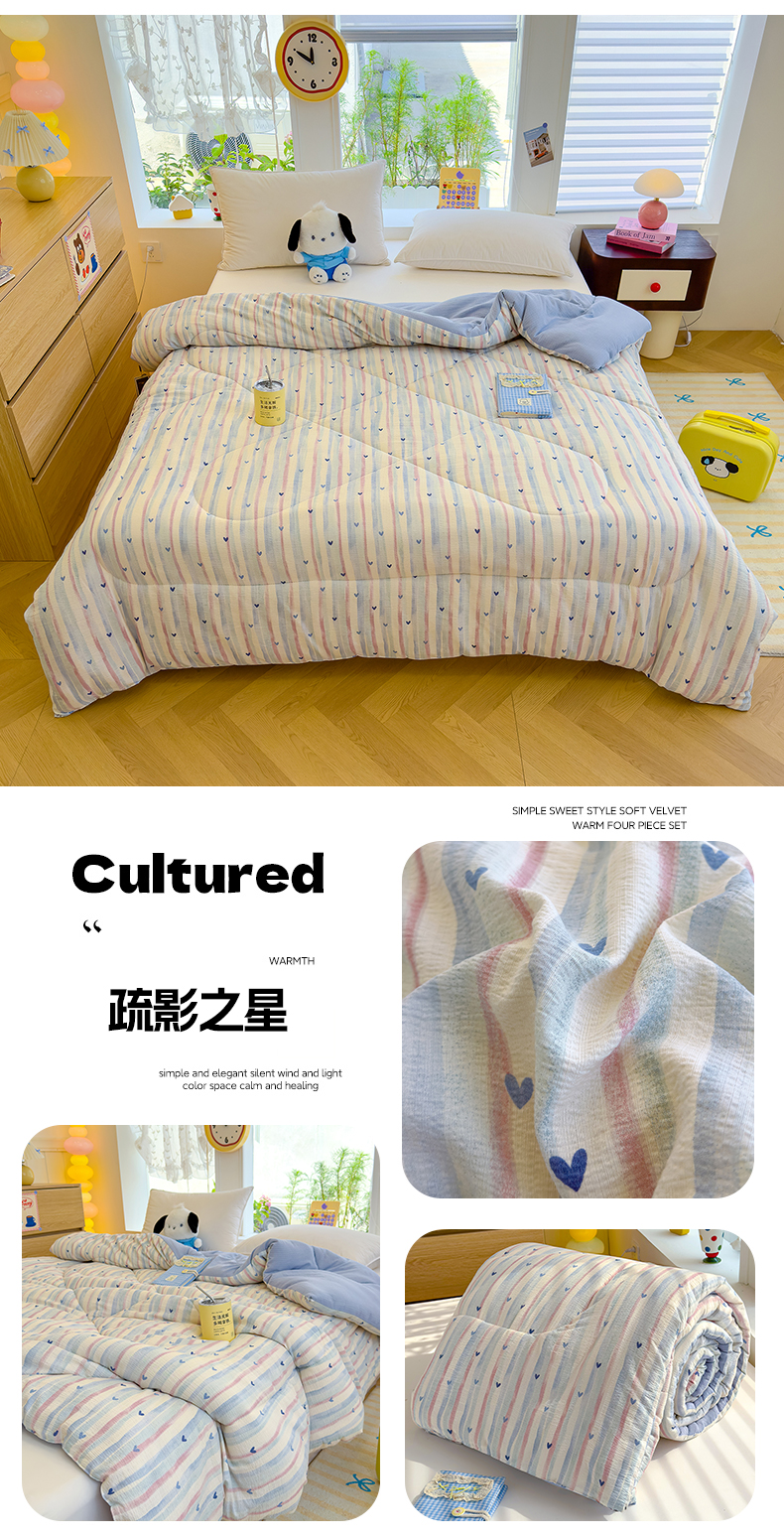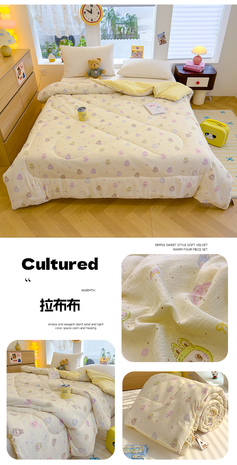 • 91家纺网 家纺一手货源 找家纺 (总)弗苓家纺 2025新款糯叽叽ins风双层纱水洗棉冬被被子被芯,绚颜,汪汪队,蜡笔小新,春晓,垂耳免,樱桃,粉黛,安妮兔,西高地,初恋,海盐-蓝,海盐-米,米奇妙妙,梦蝶,郁金香,组合图仅供参考不可下单