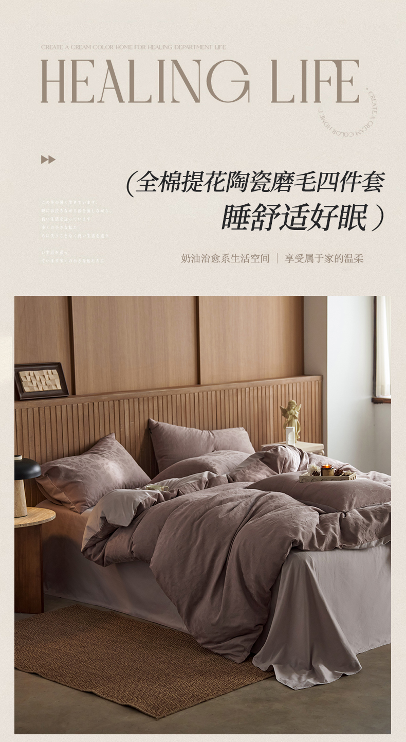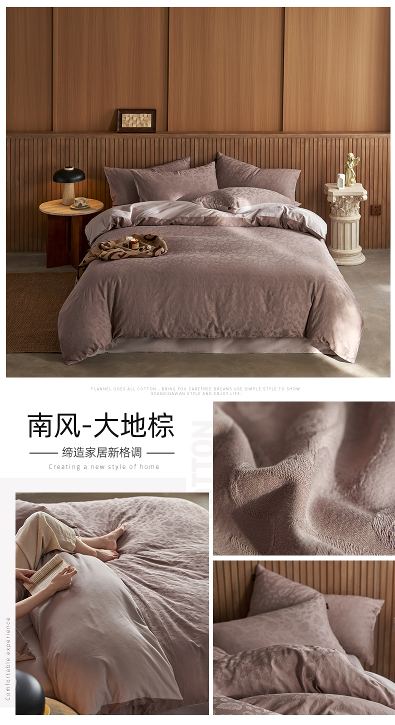 当前位置: 91家纺网 > 商品网购 > 床品套件 > 四件套 > 磨毛活性四件套 > 禾时 2025新款60s轻奢提花磨毛四件套—南风 南风-大地棕