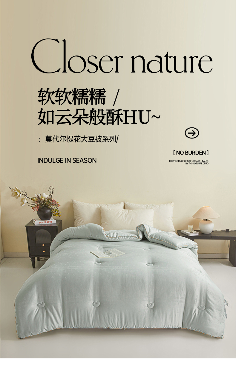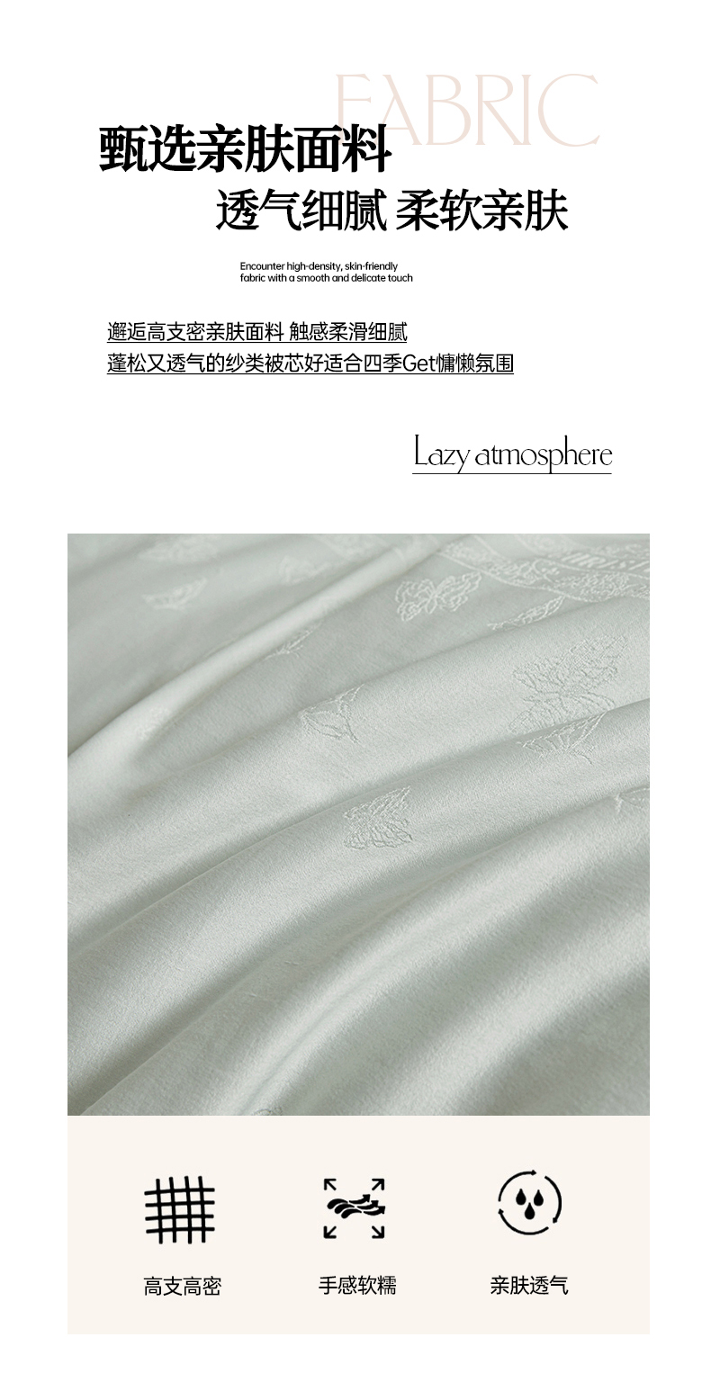 商品名称:寐居家纺 2025新款莫代尔提花被子被芯 蝶梦-绿
