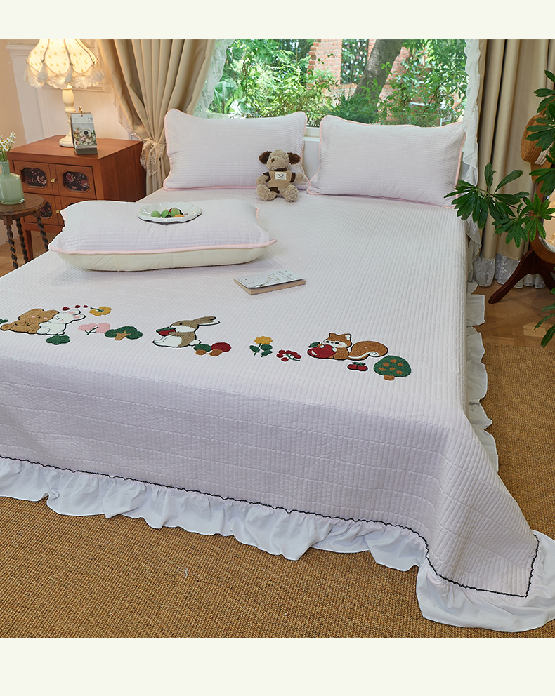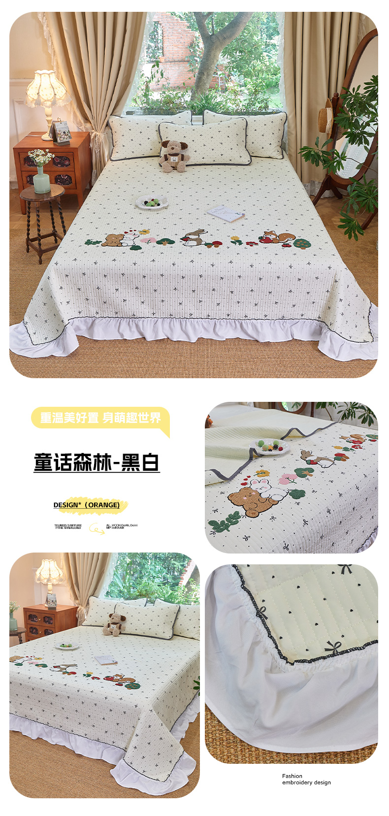 当前位置: 91家纺网 > 商品网购 > 床品套件 > 三件套 > 鑫喜莱家纺 2025新款云朵棉毛巾绣花边款床盖三件套系列 童话森林-满粉