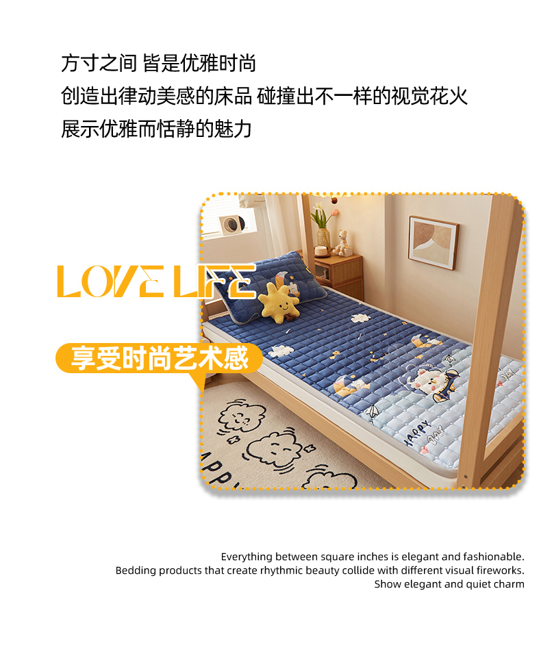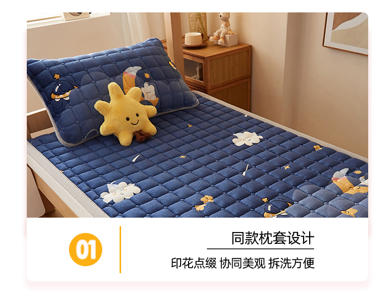商品名称:奇丝雅 2025新款A类牛奶绒床褥床垫家用学生宿舍上下铺寝室软垫床护垫夹棉褥子-学生床单件 月亮熊