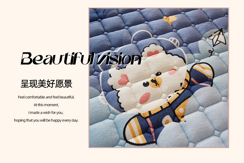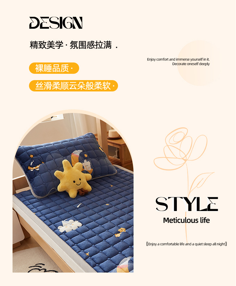 (总)奇丝雅 2025新款A类牛奶绒泡泡绒床褥床垫床盖兔毛绒家用学生宿舍上下铺寝室褥子软垫床护垫夹棉(大床)场景二,星星猫咪,月亮湾,趴趴狗,繁星,爱心咖,樱桃猫咪,幻影灰,暖绒蓝,清新绿,柔和蓝