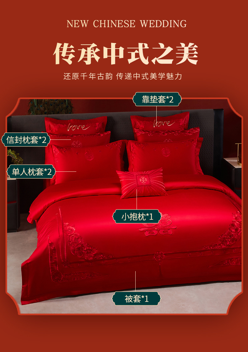 当前位置: 91家纺网 > 商品网购 > 床品套件 > 四件套 > 婚庆四件套 > 红番天婚庆 (控价)2025新款全棉新中式刺绣款婚庆四件套多件套 嫁娶-红