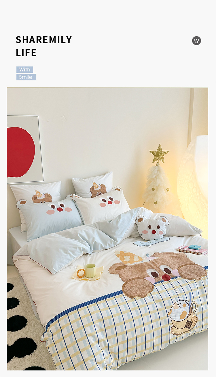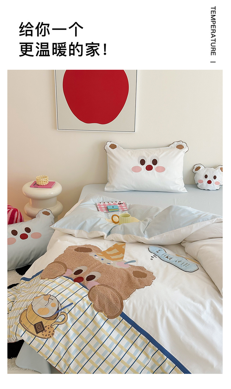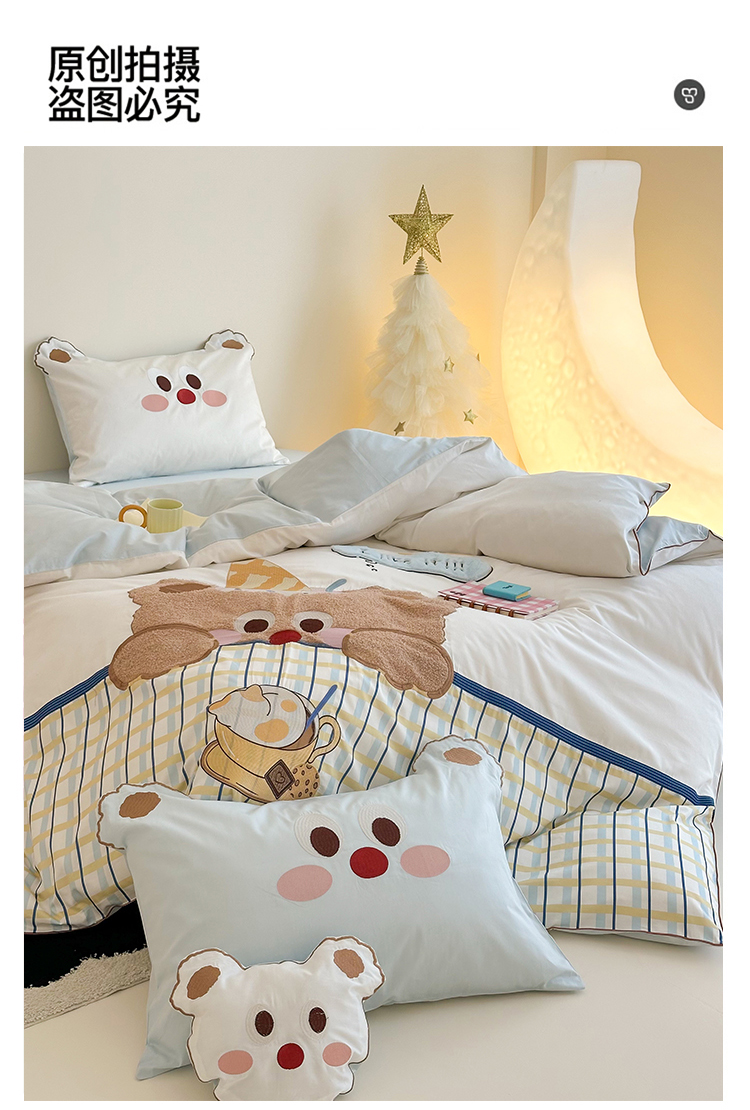 (总)西西家居 2023新款60S奥地利兰精天丝绣花四件套-糖果熊,糖果熊