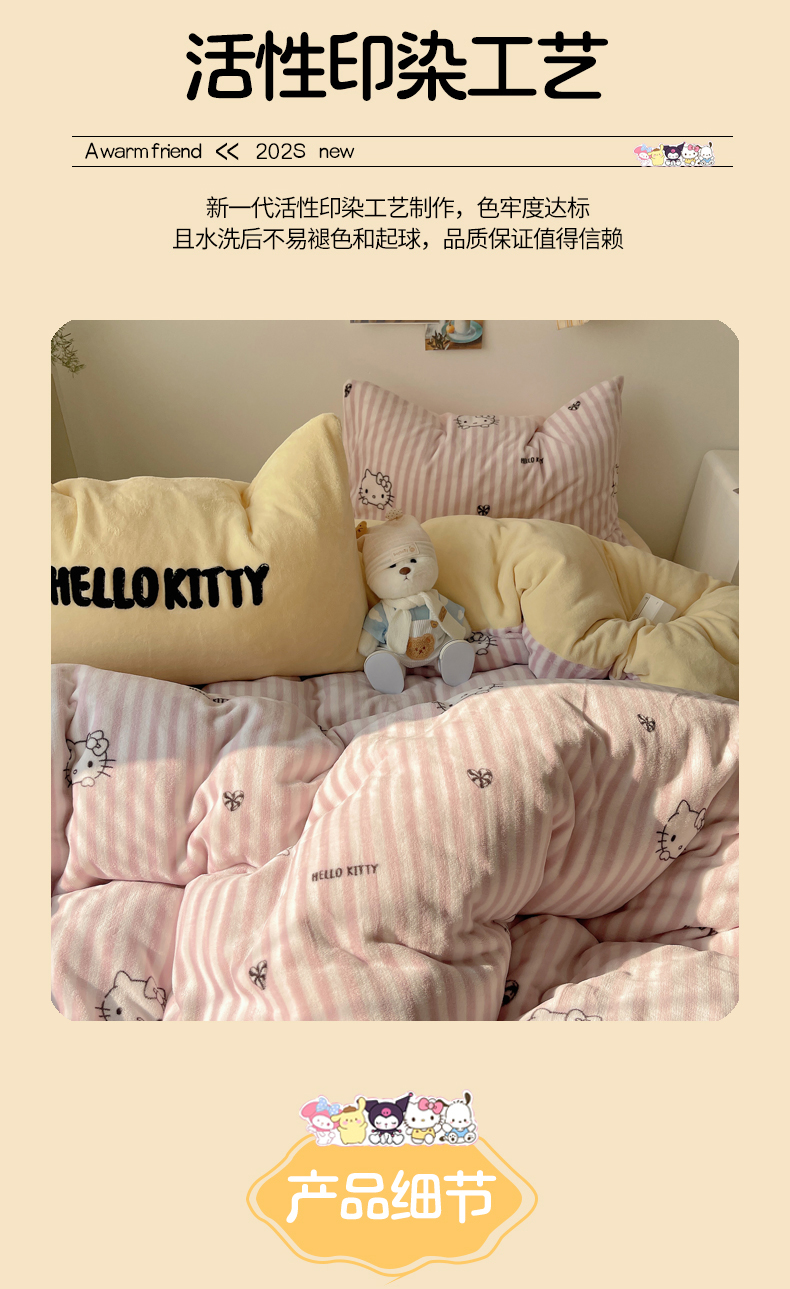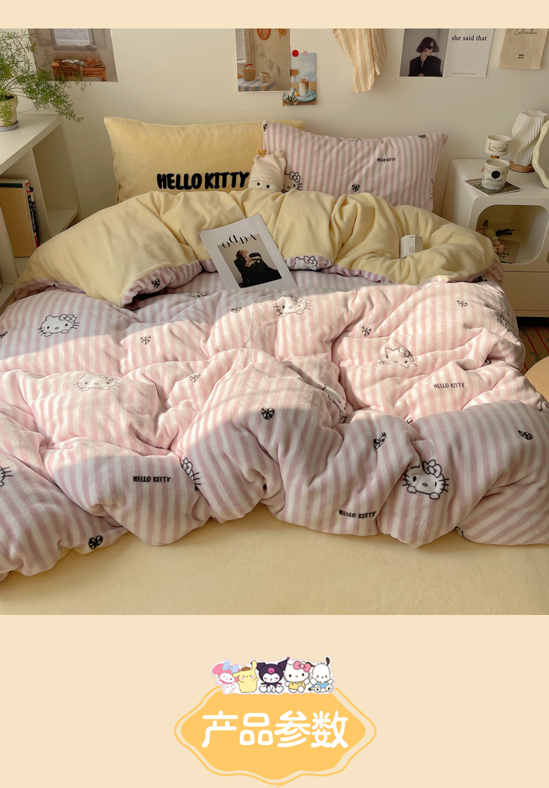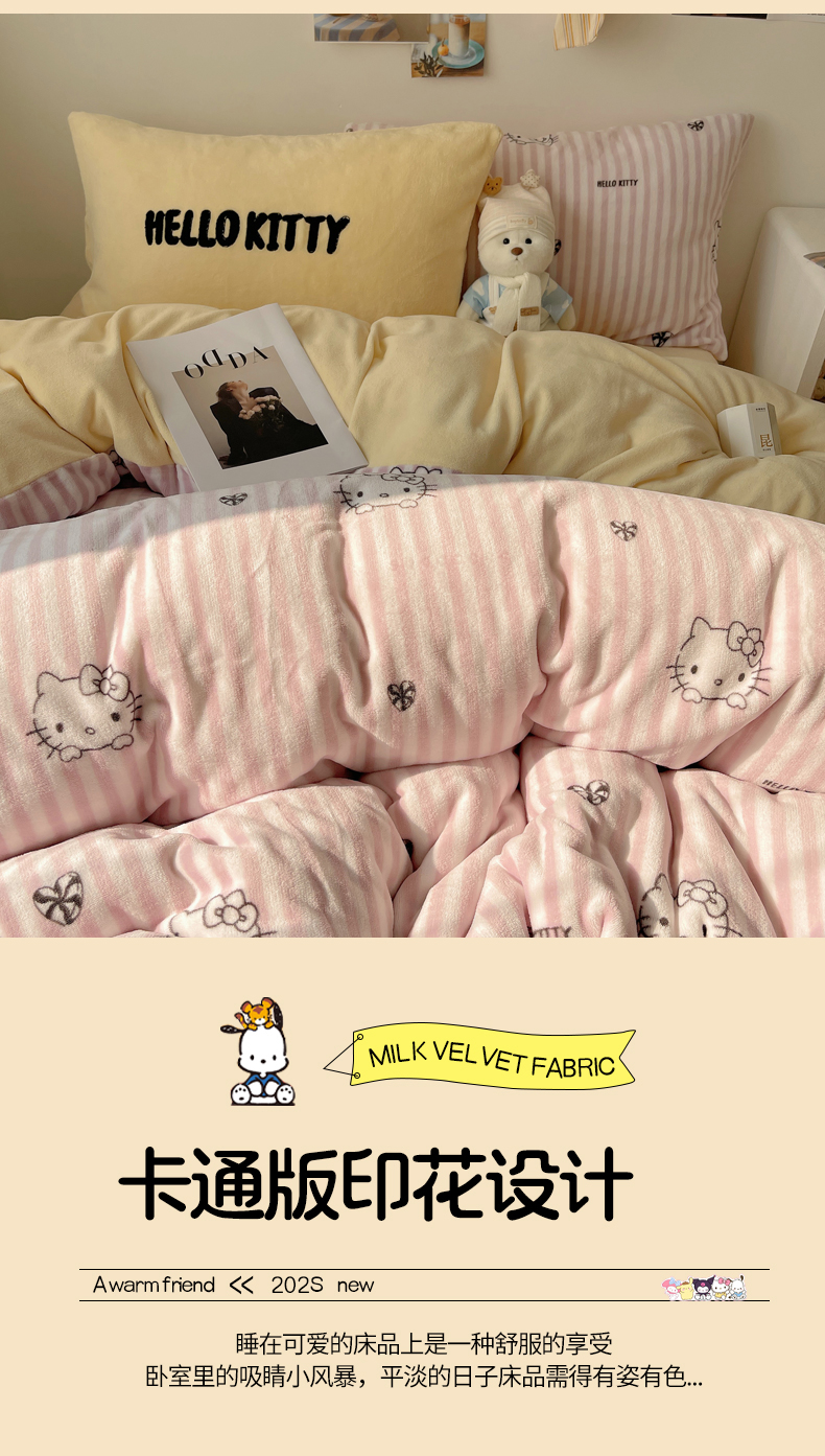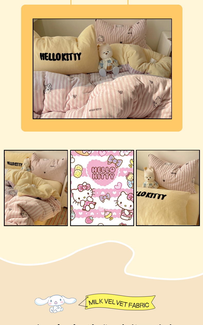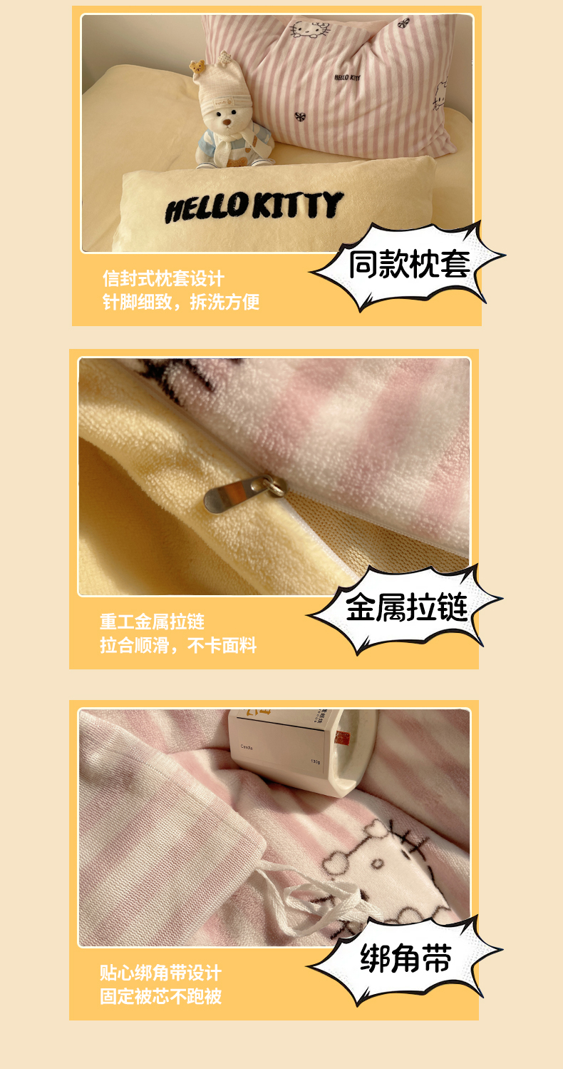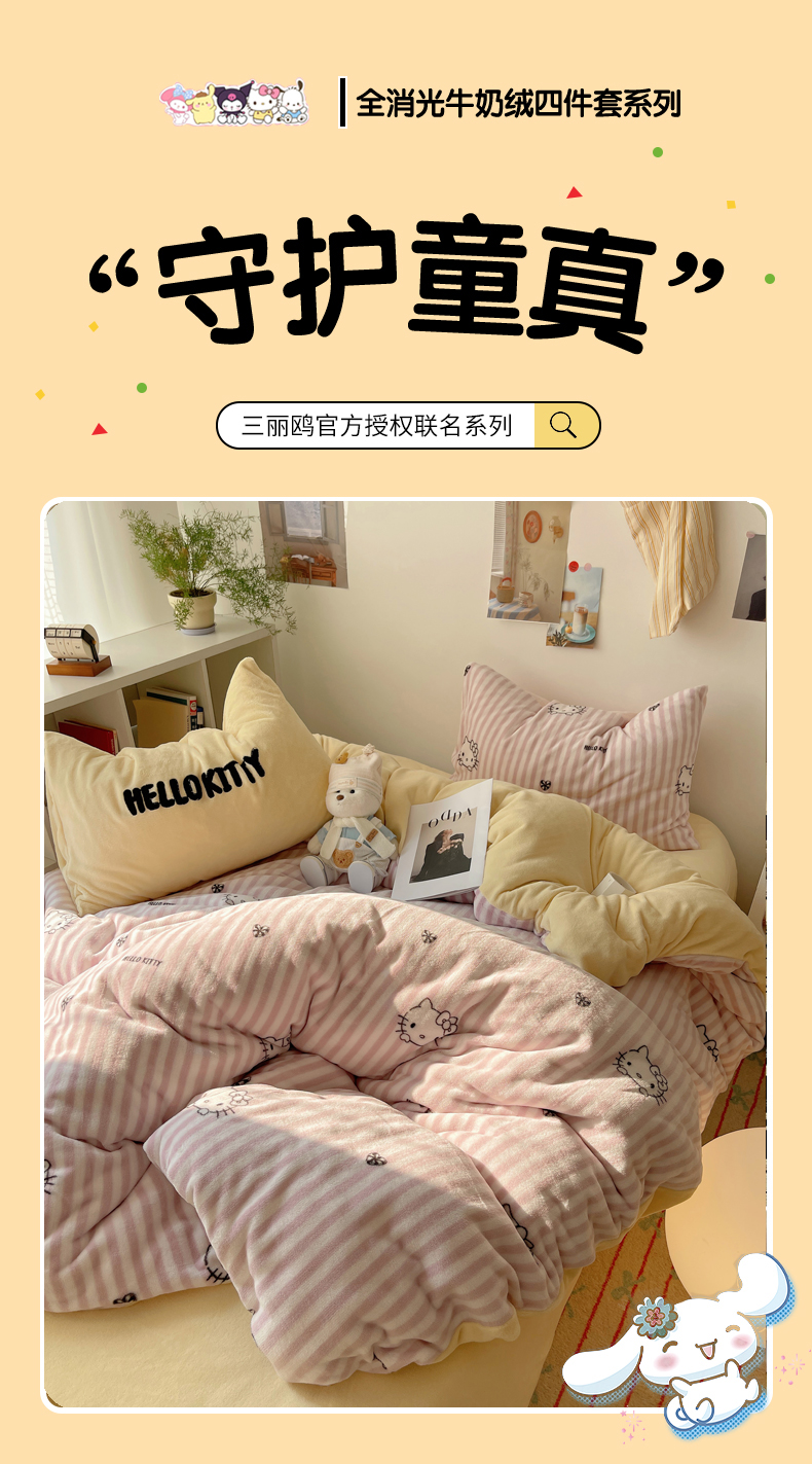 当前位置: 91家纺网 > 商品网购 > 床品套件 > 四件套 > 牛奶绒四件套 > 三朵家纺 2025新款牛奶绒凯蒂猫四件套 可可KT系列 可可KT-黄
