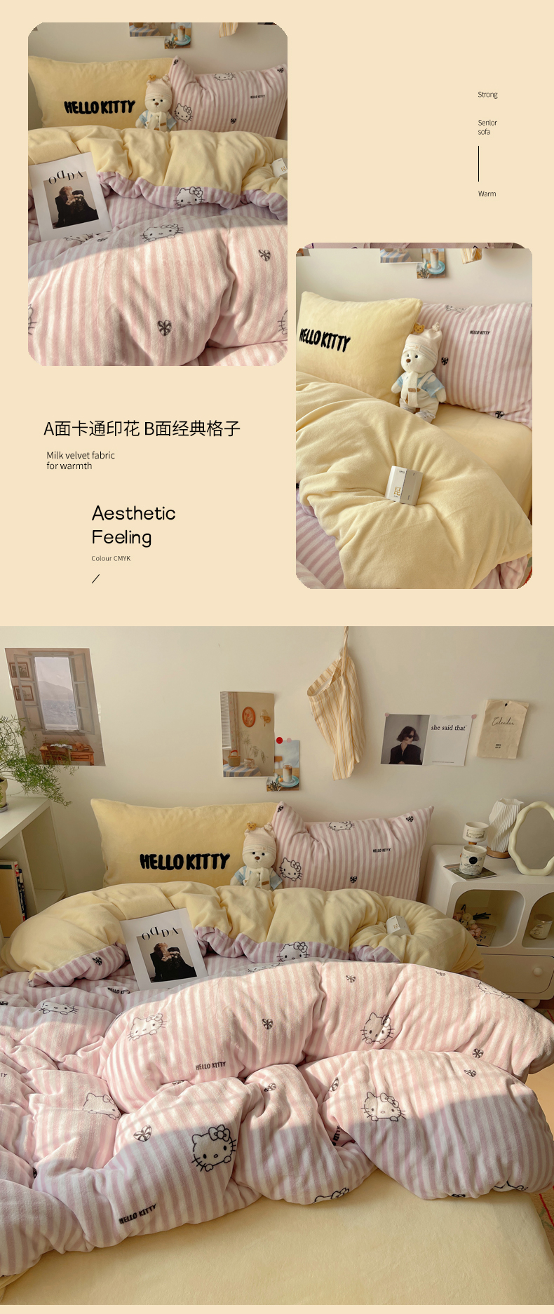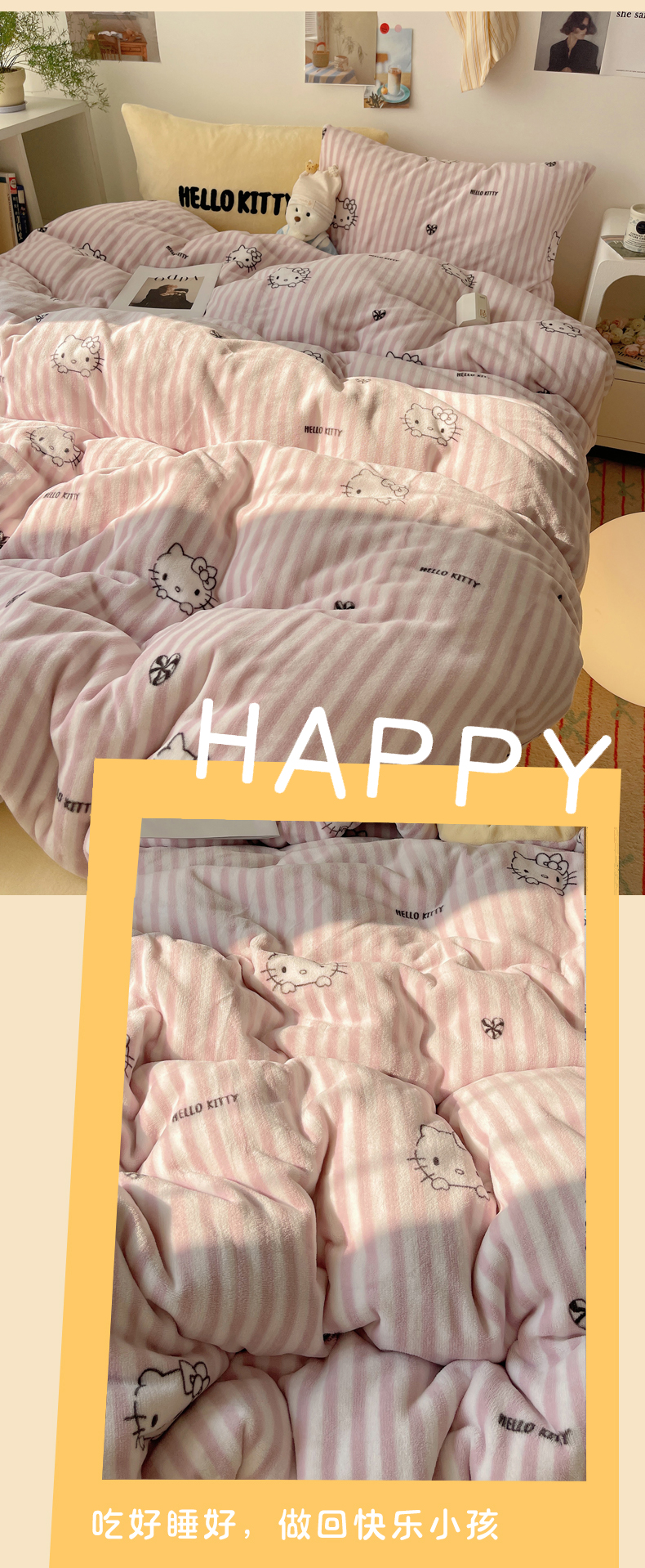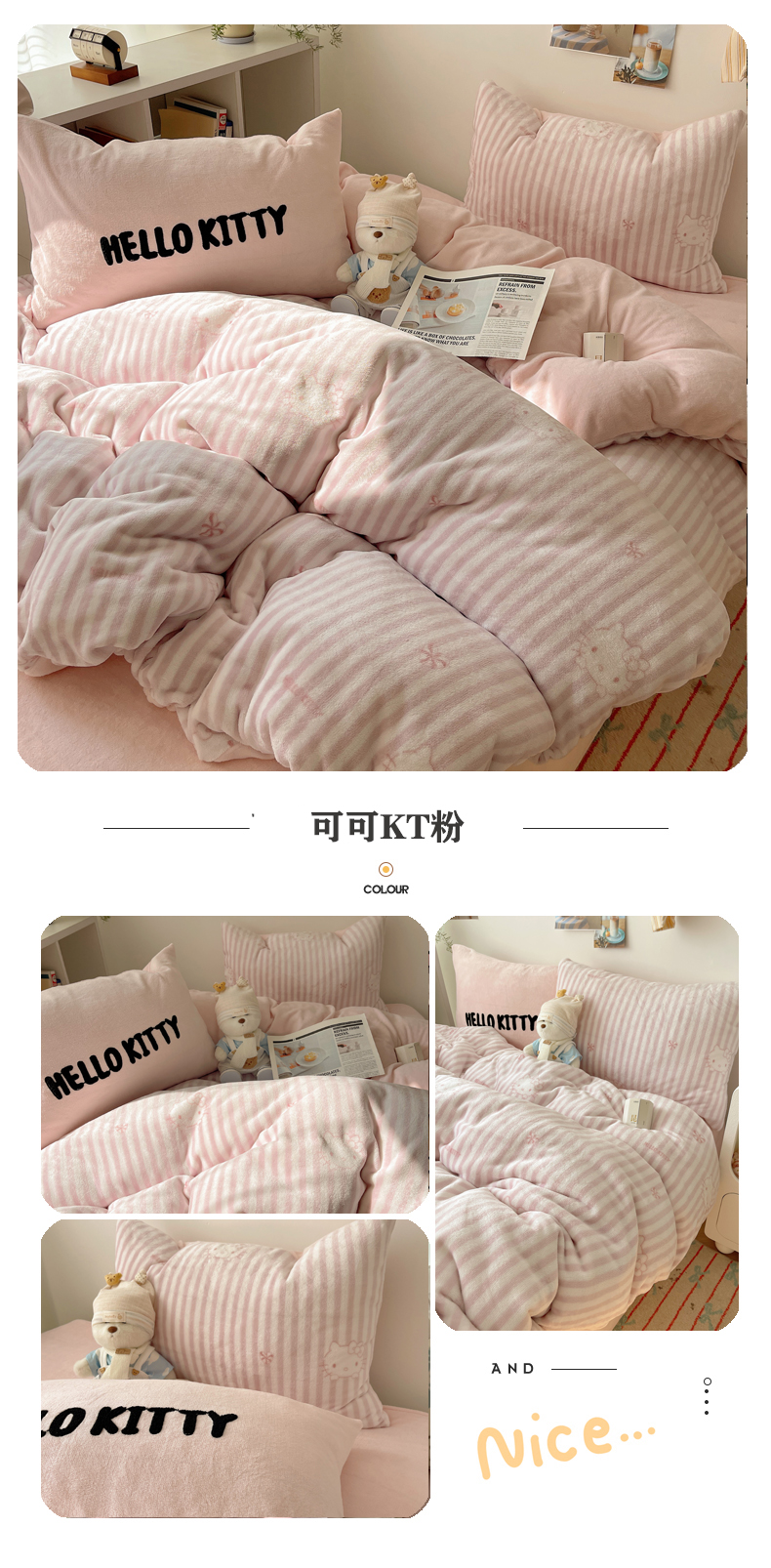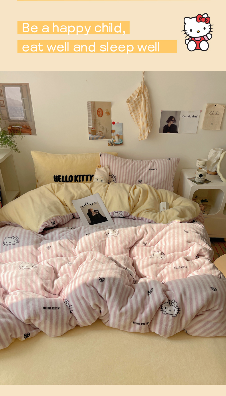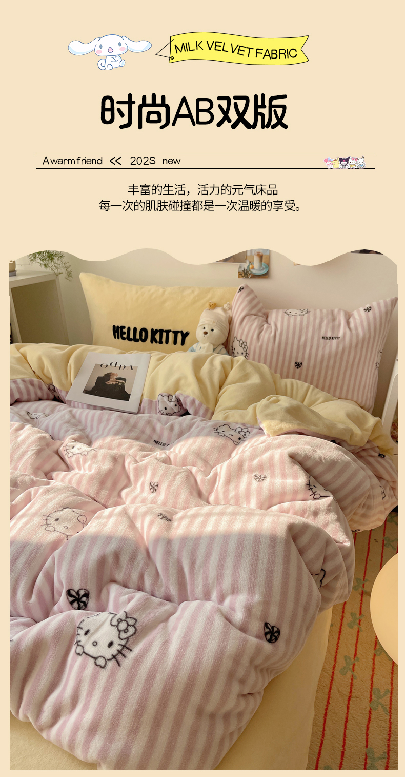 当前位置: 91家纺网 > 商品网购 > 床品套件 > 四件套 > 牛奶绒四件套 > 三朵家纺 2025新款牛奶绒凯蒂猫四件套 可可KT系列 可可KT-黄