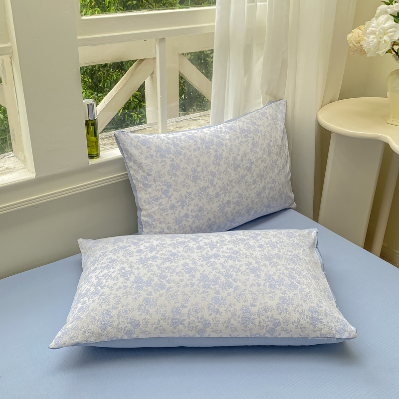 商品名称:朵朵家纺 2025新款云感提花双层纱印花单品枕套 花町小能蓝