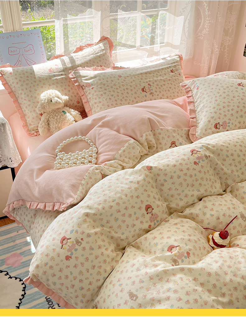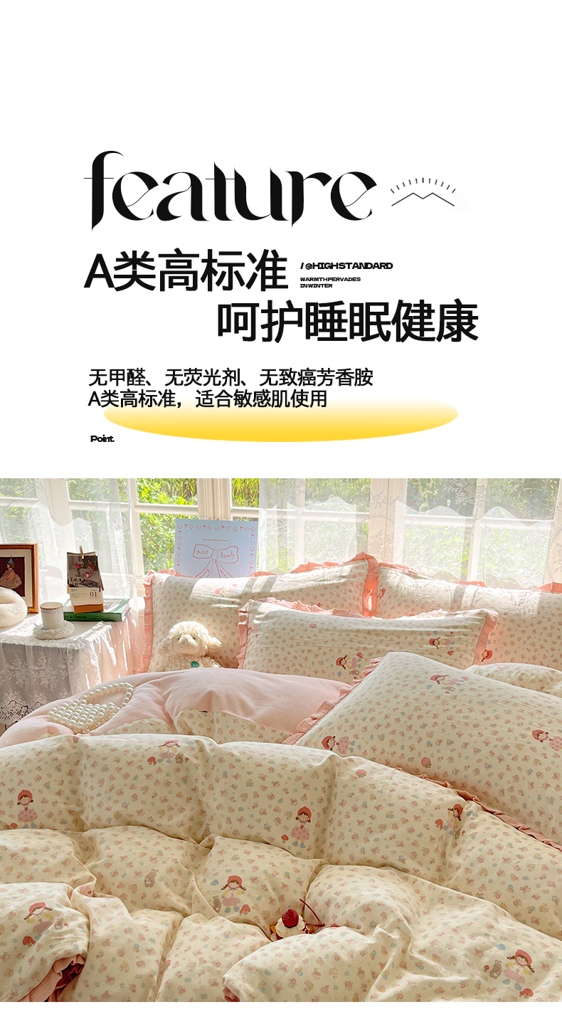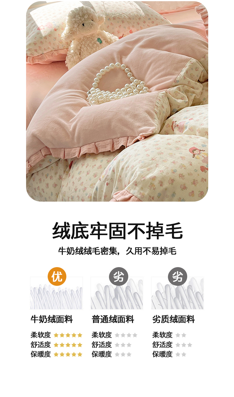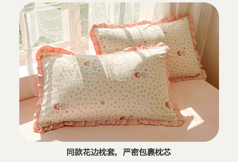 商品名称:桃子家居 2025新款A类韩版花边皱皱纱纯棉有氧双层纱加全消光加厚牛奶绒高品质棉加绒暖纱绒四件套 暖纱绒-小红帽女孩