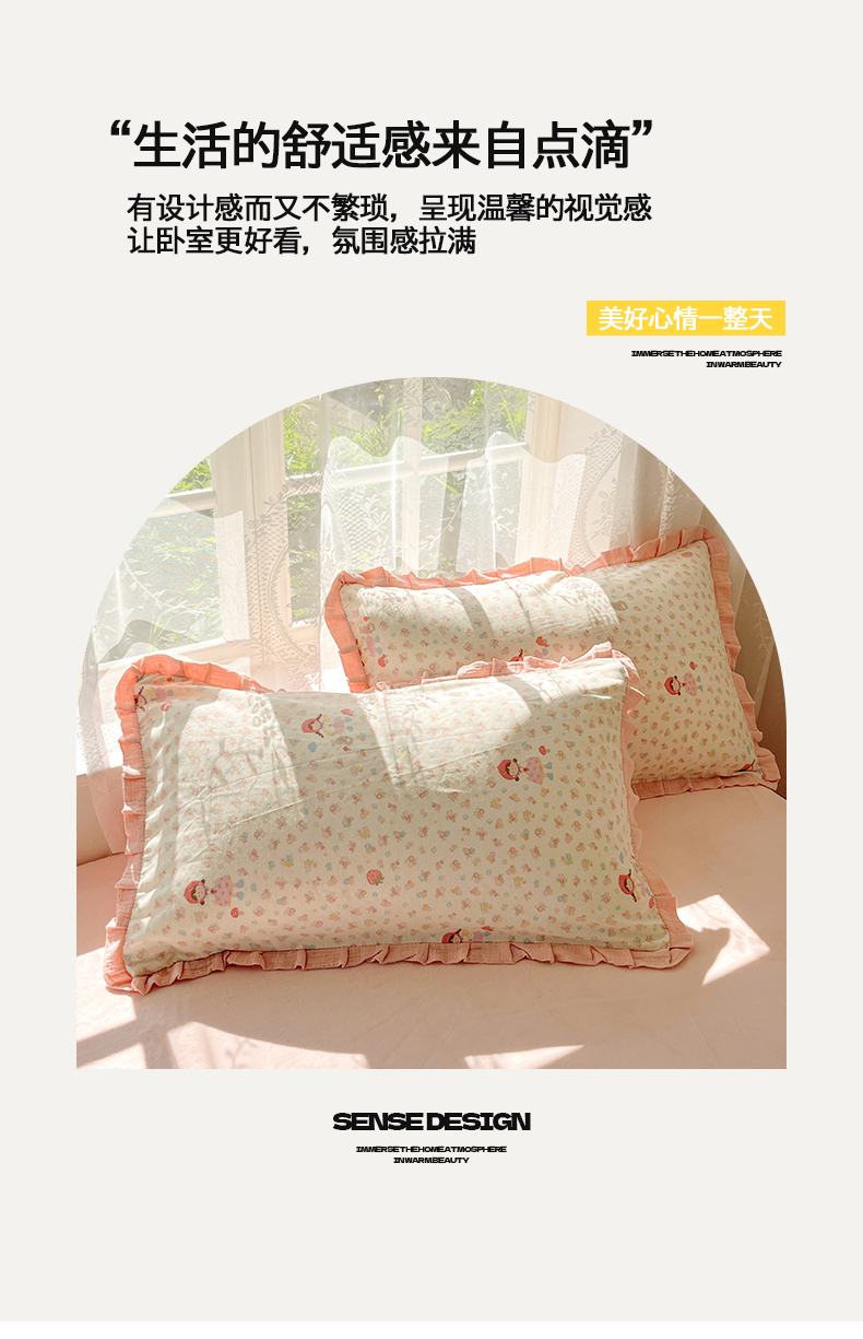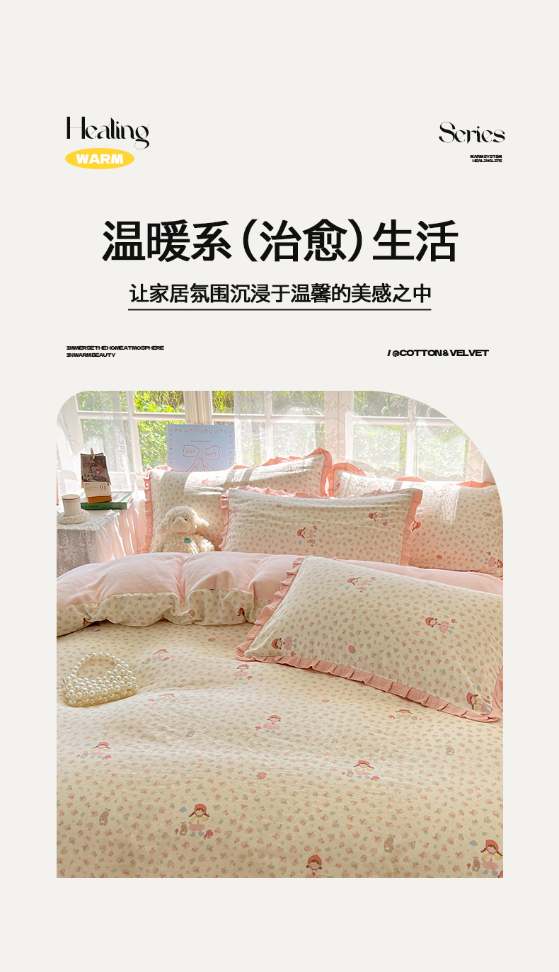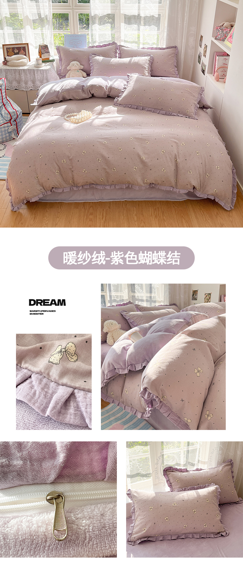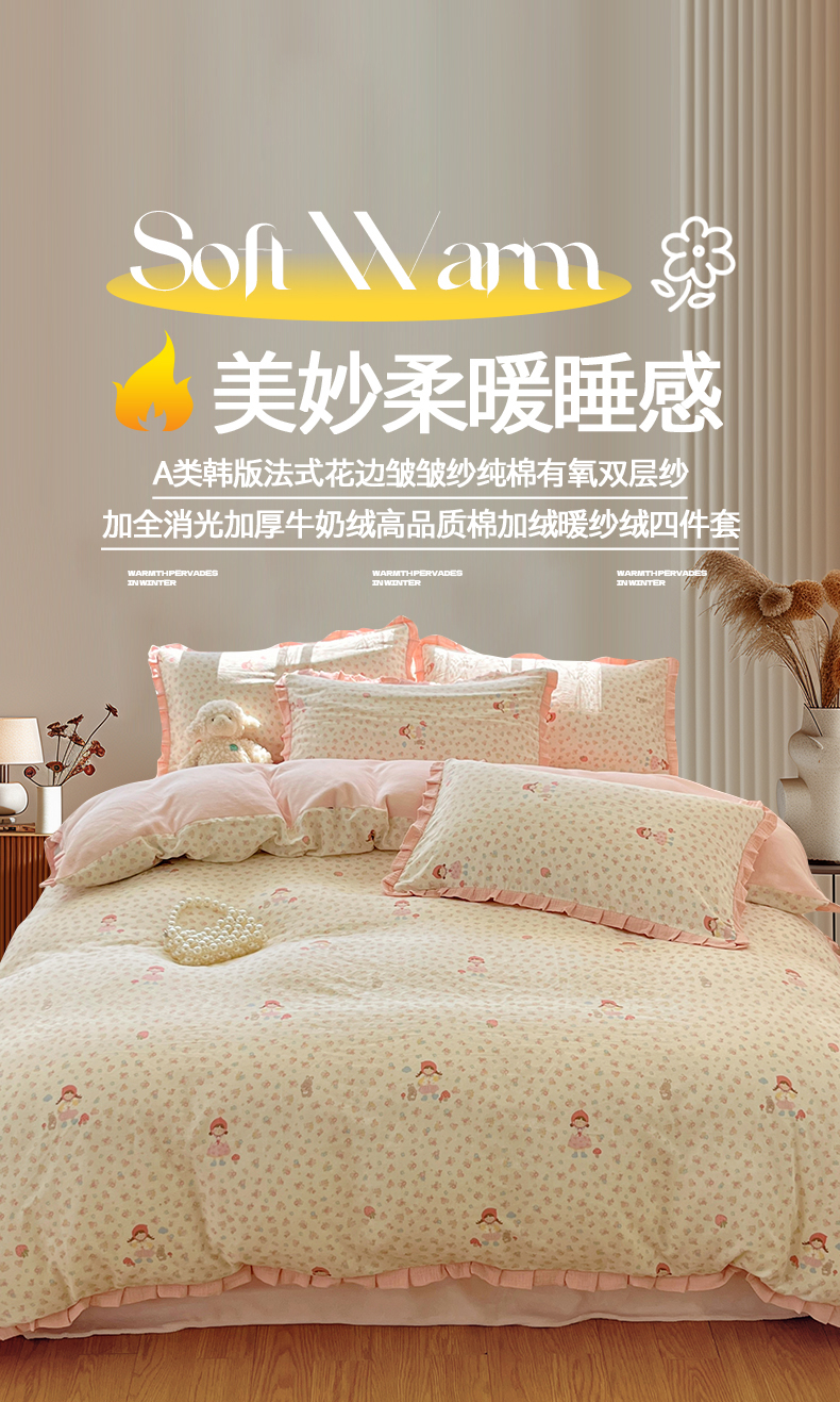 商品名称:桃子家居 2025新款A类韩版花边皱皱纱纯棉有氧双层纱加全消光加厚牛奶绒高品质棉加绒暖纱绒四件套 暖纱绒-小红帽女孩