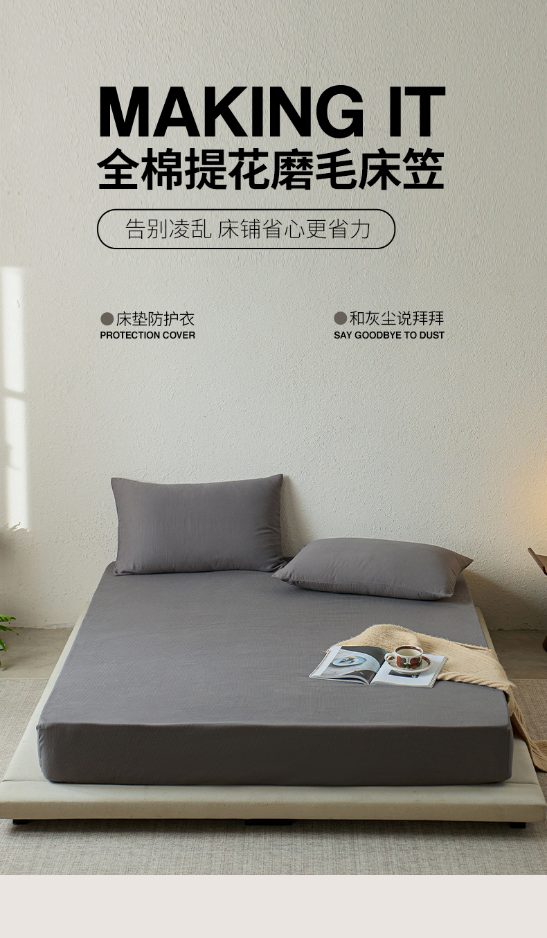 商品名称:千朵森 2025新款全棉纯棉提花磨毛床笠单品床笠单件单床笠 线语—夜幕灰