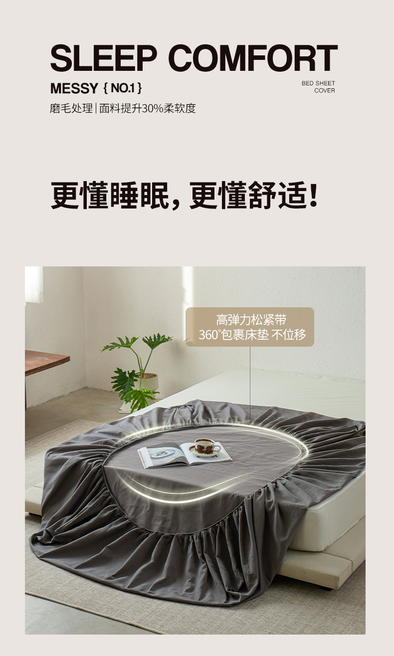 千朵森 2025新款全棉纯棉提花磨毛床笠单品床笠单件单床笠 线语—夜幕灰