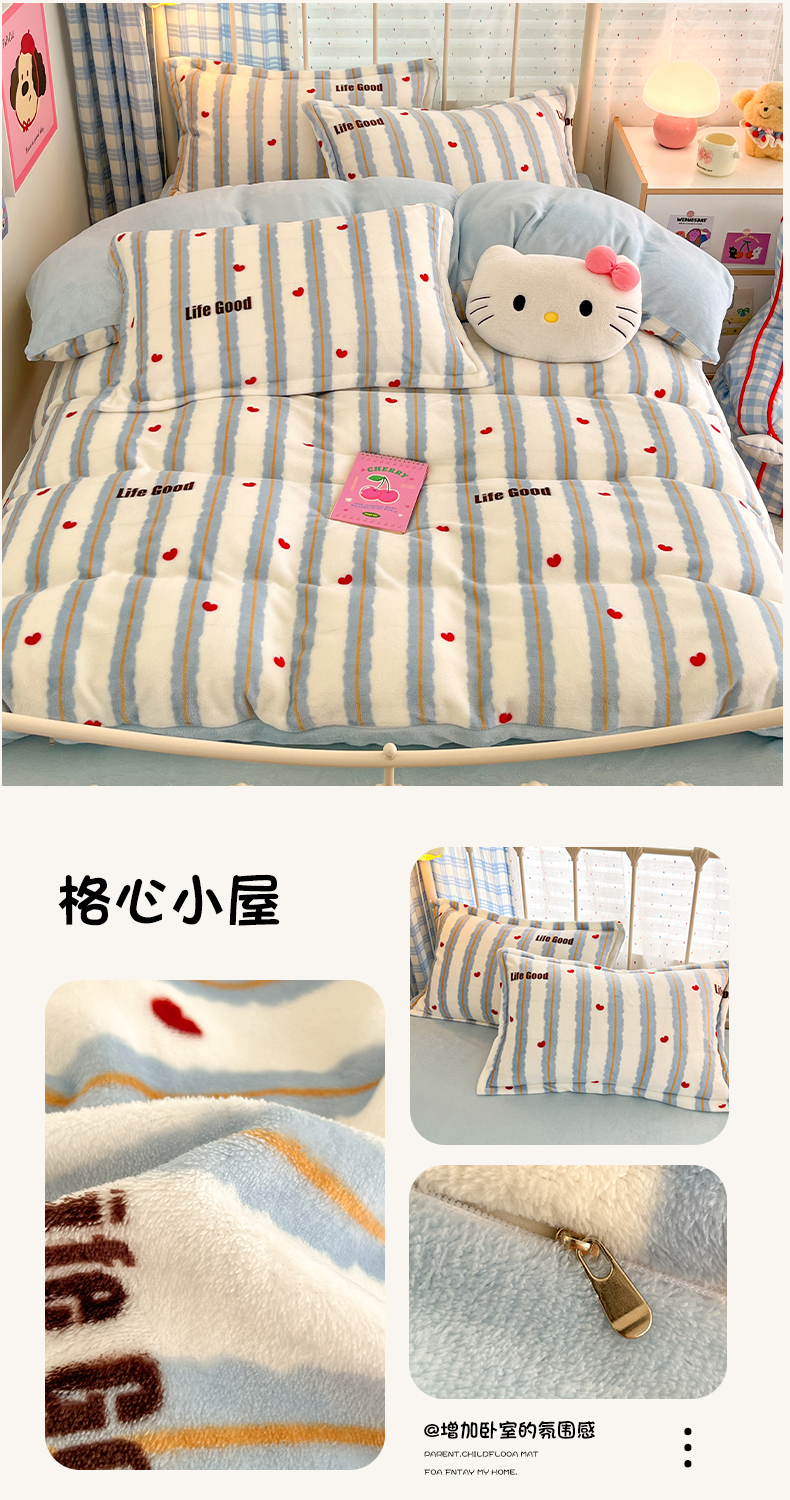 当前位置: 91家纺网 > 商品网购 > 床品套件 > 四件套 > 牛奶绒四件套 > 川悦生活 2025新款加厚牛奶绒印花四件套 格心小屋