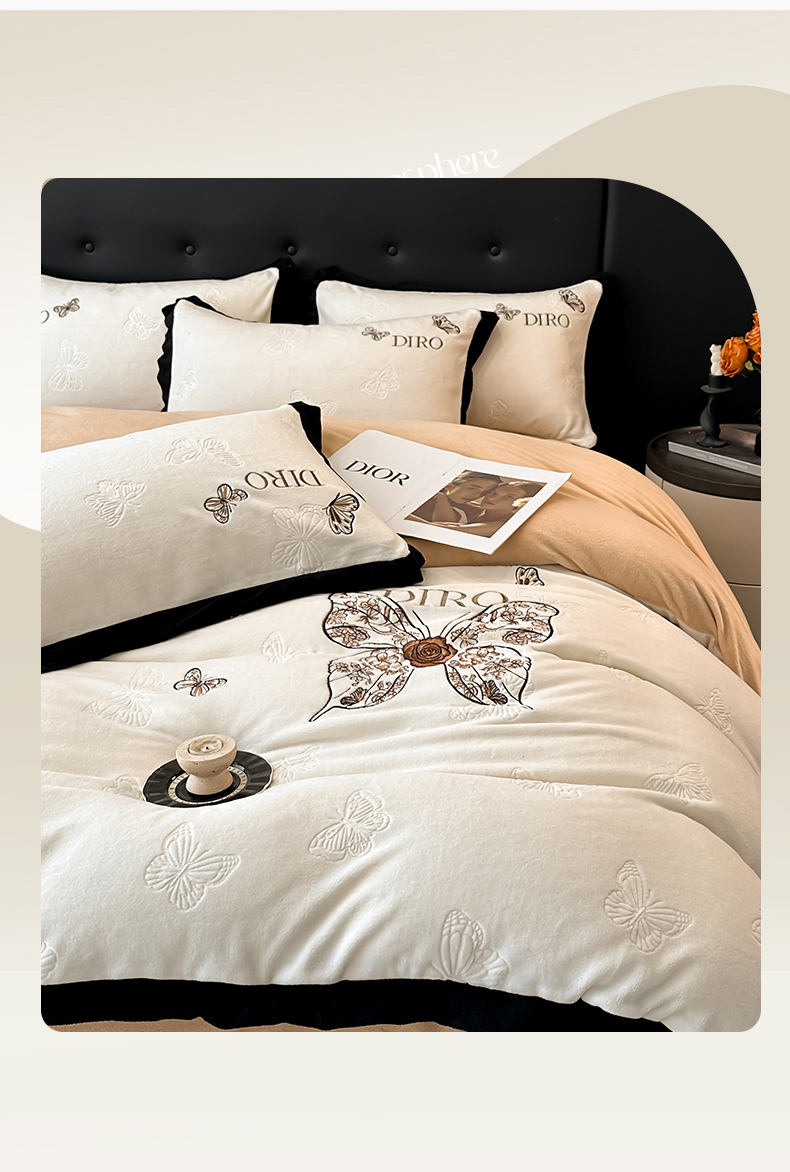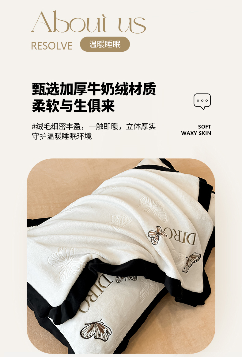 商品名称:金牛座家纺 2025新款8斤加厚牛奶绒刺绣四件套-蝴蝶飞飞 蝴蝶飞飞-奶白