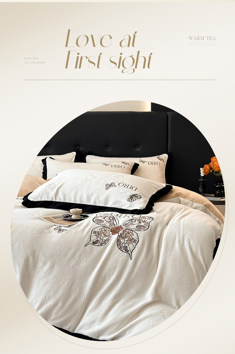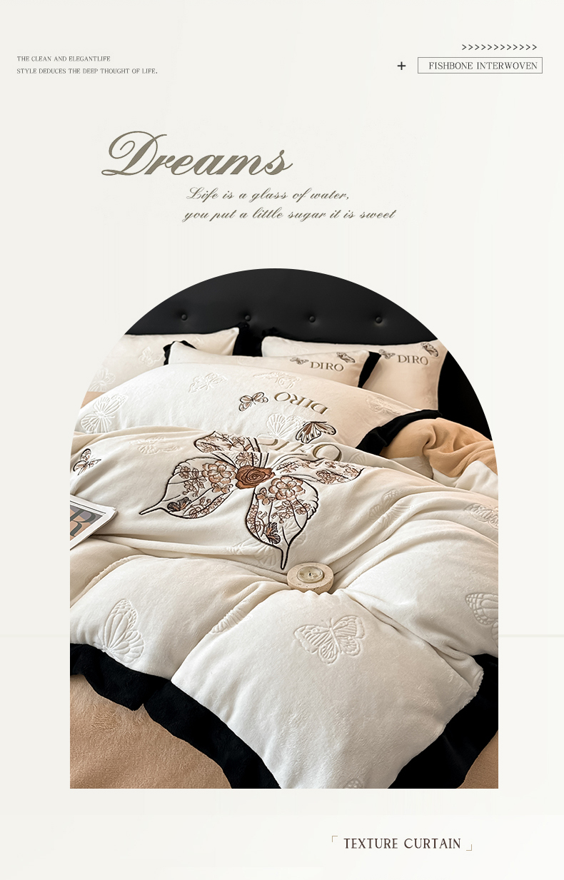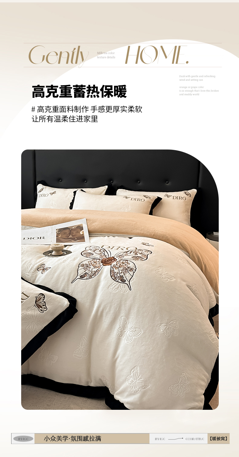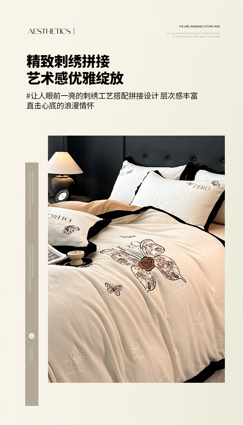 (总)金牛座家纺 2025新款立体雕花加厚牛奶绒刺绣拼接四件套【控价 售价请勿低于158】,花海,春见,蝶林,玫语