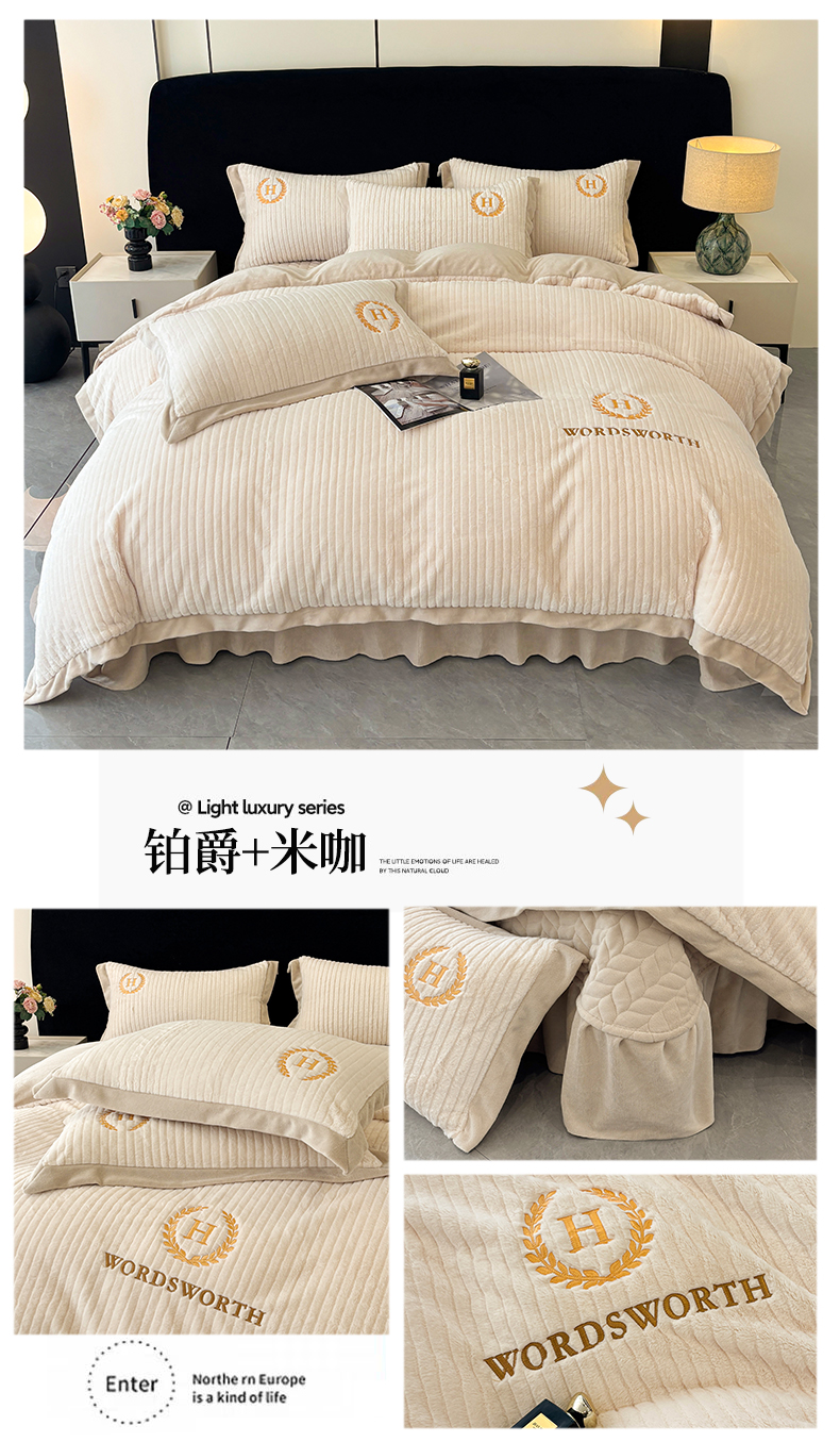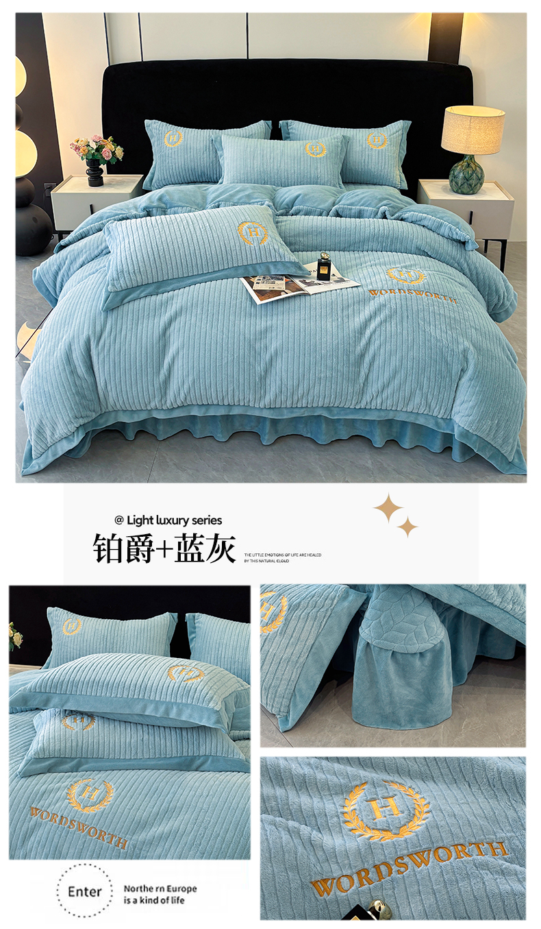 (总)金艾草 2025新款纯色兔毛宽边刺绣床盖款四件套【工艺款】-铂爵,铂爵-豆沙,铂爵-蓝灰,铂爵-米咖,铂爵+灰