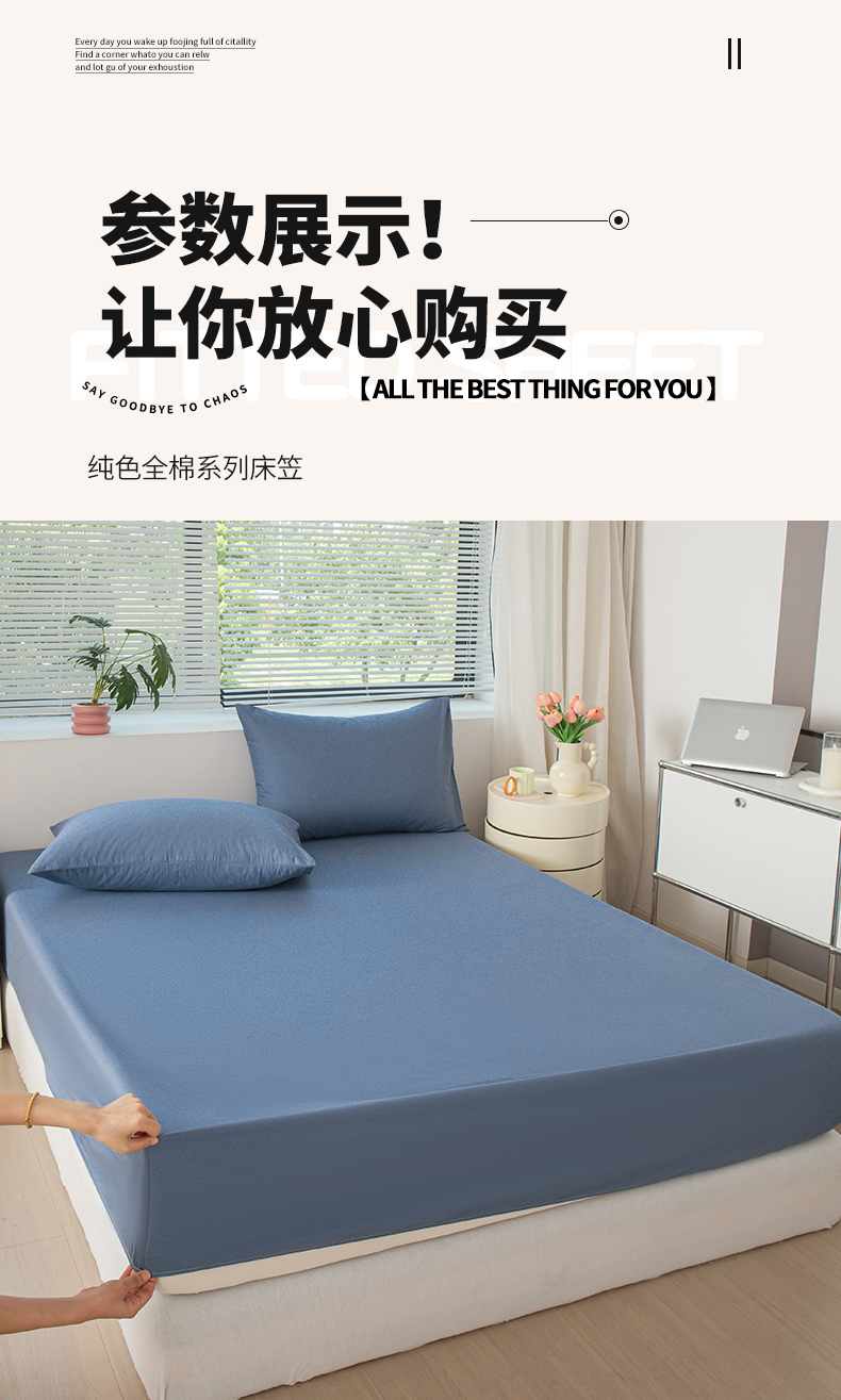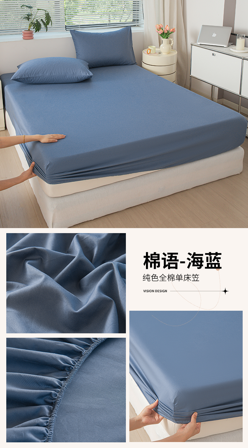 恬澳家纺 2025新款纯色全棉床笠-棉语 棉语-海蓝