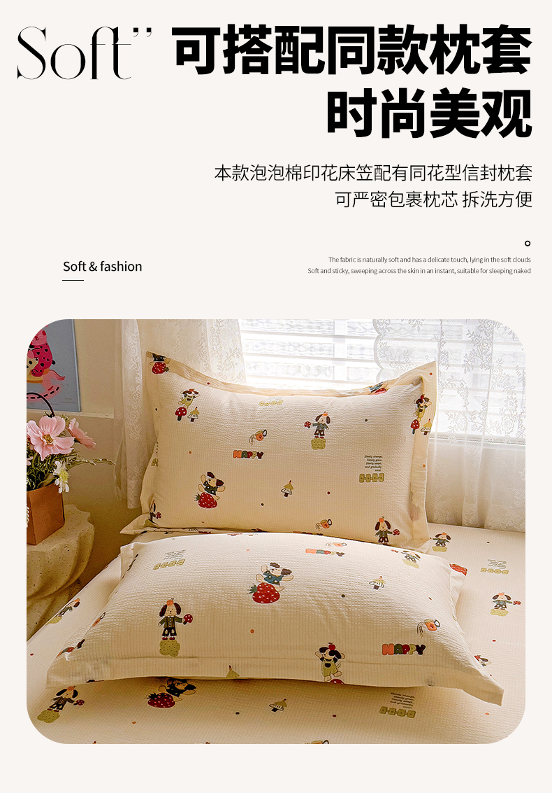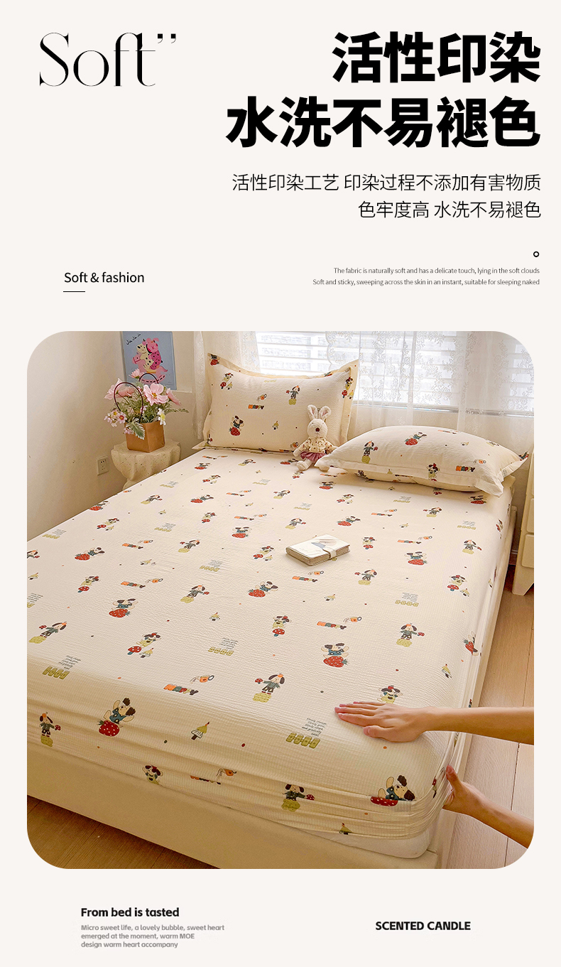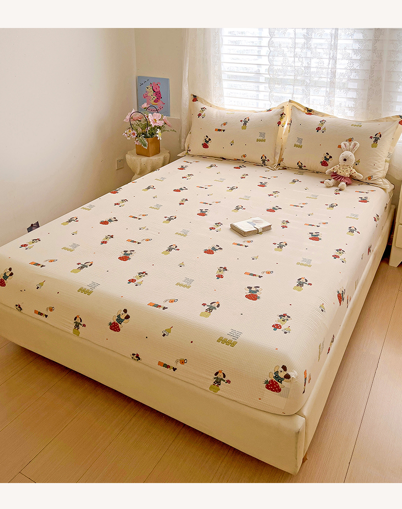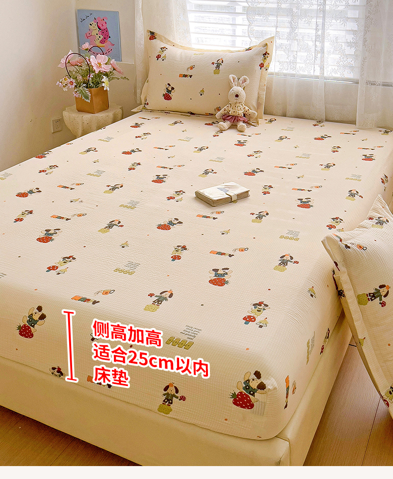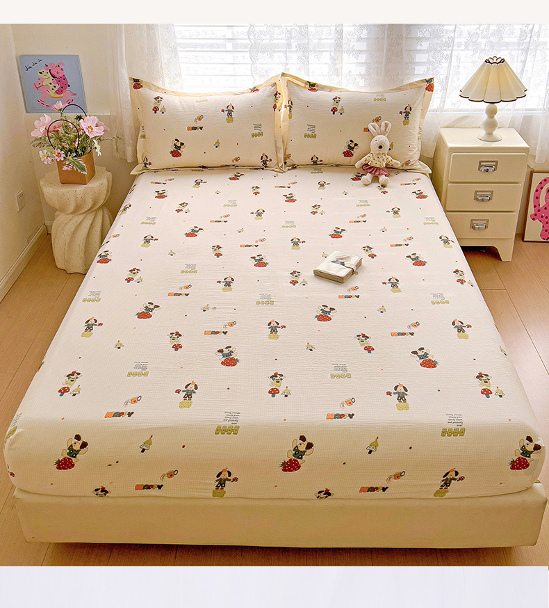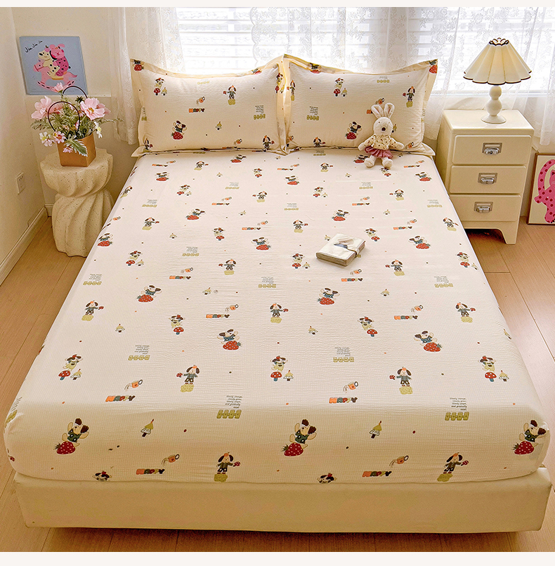 恬澳家纺 2025新款A类印花泡泡棉床笠-场景二 布丁狗