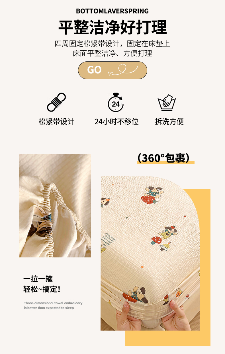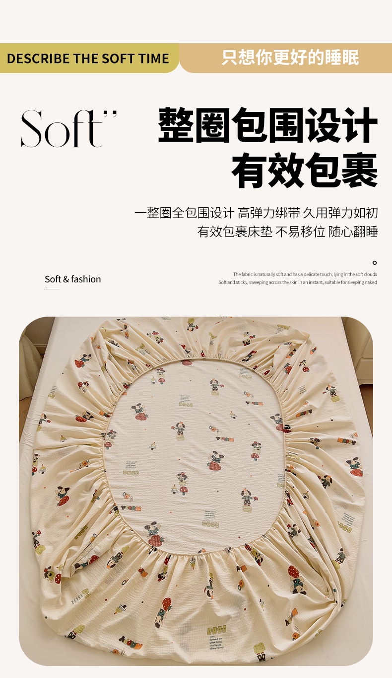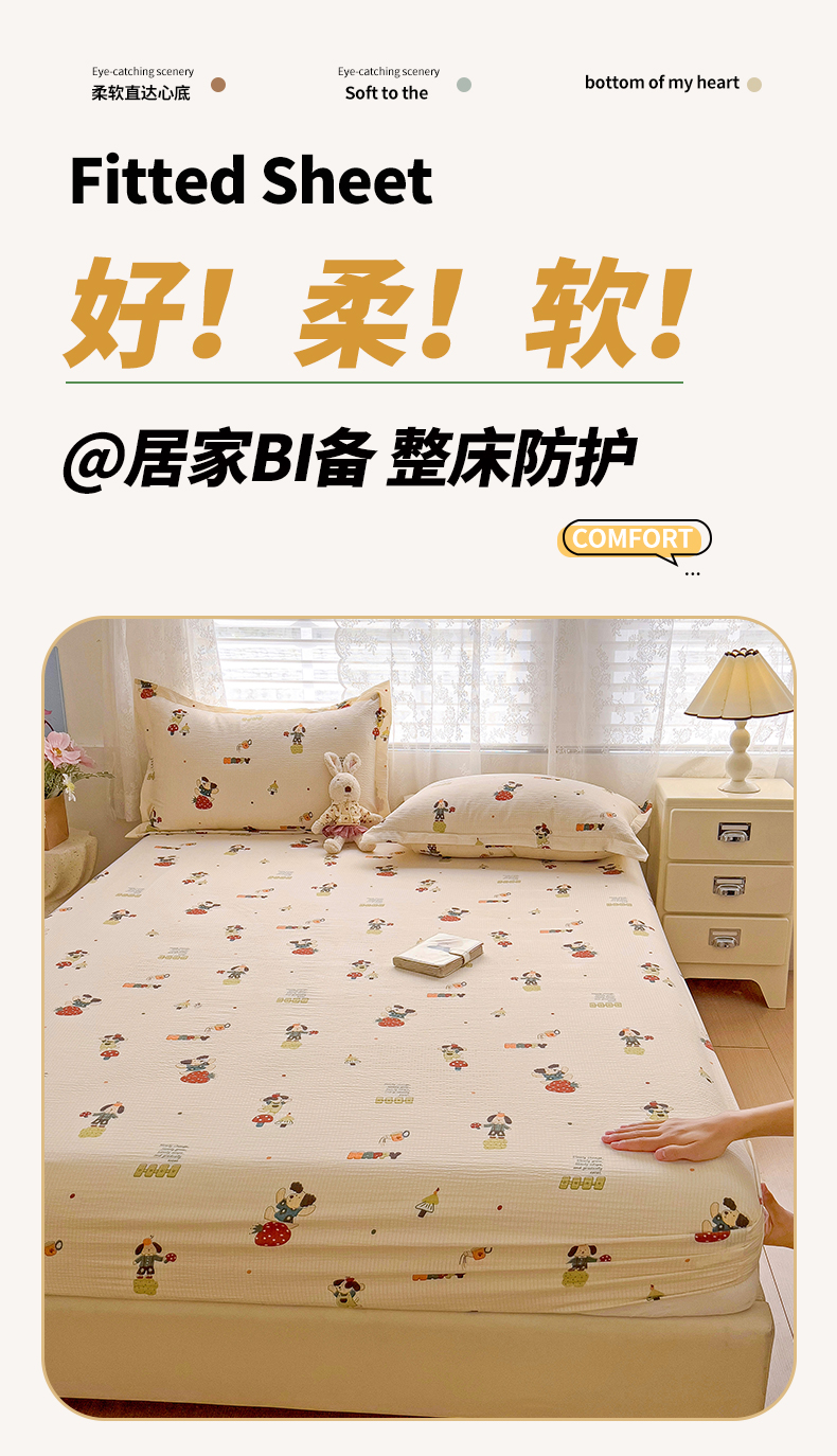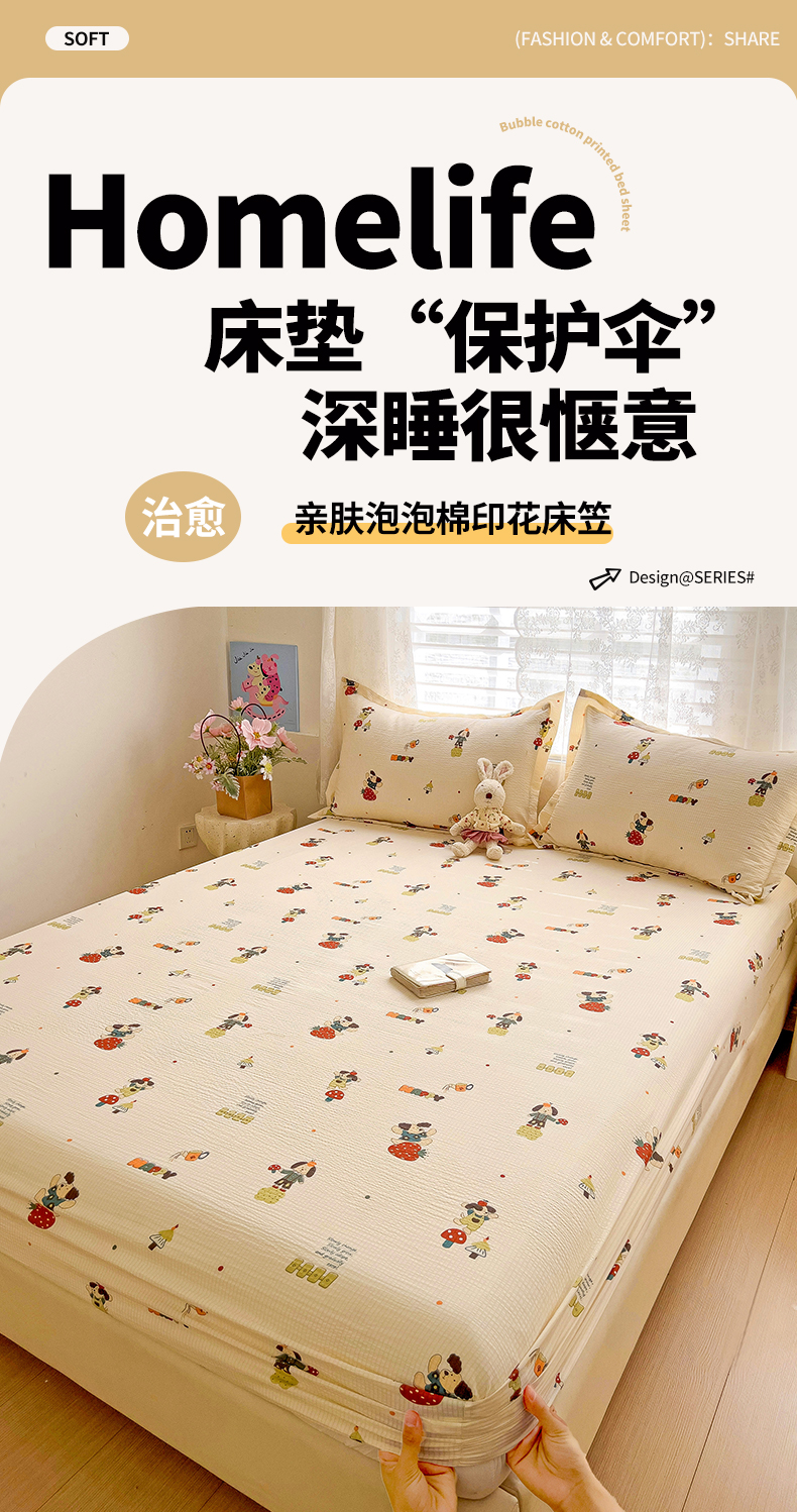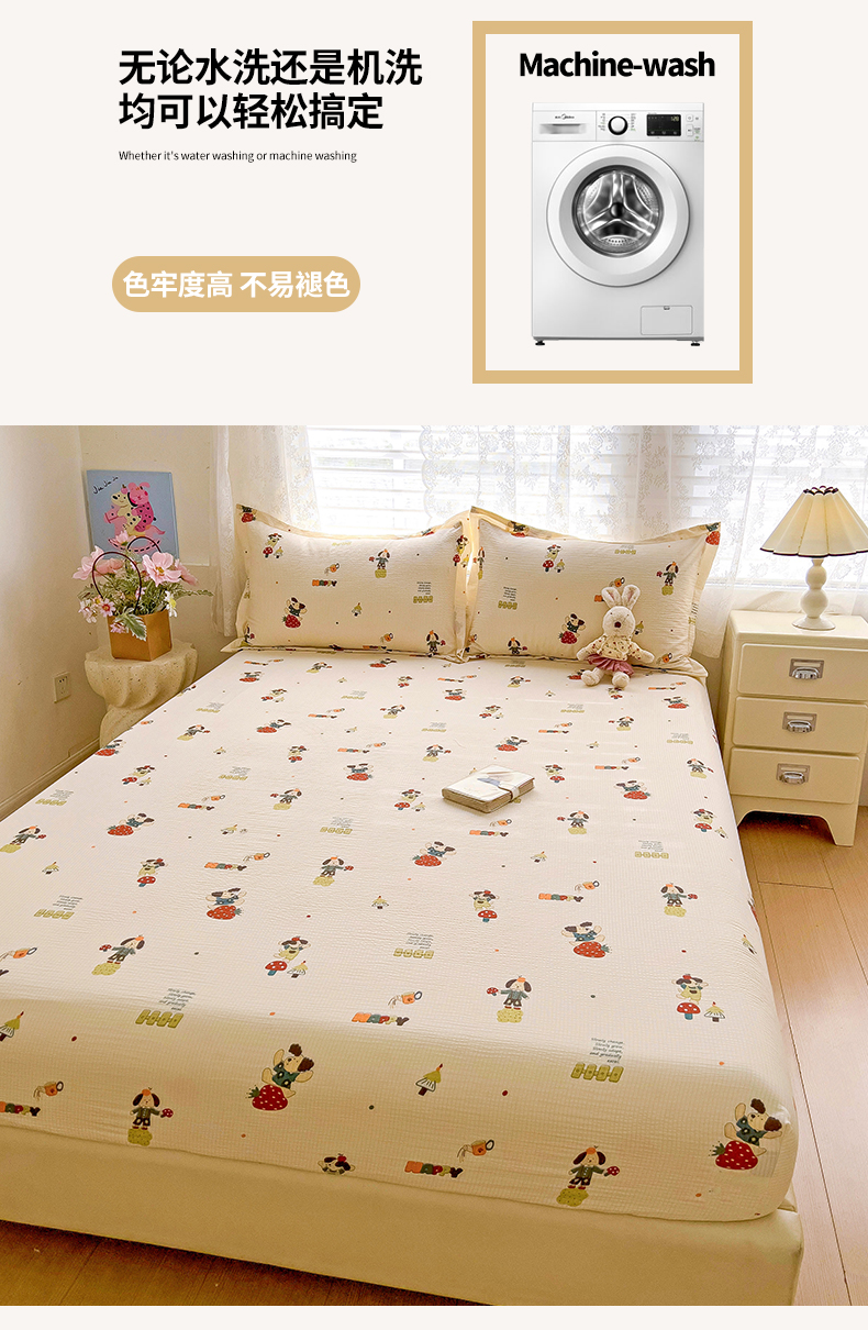 恬澳家纺 2025新款A类印花泡泡棉床笠-场景二 布丁狗