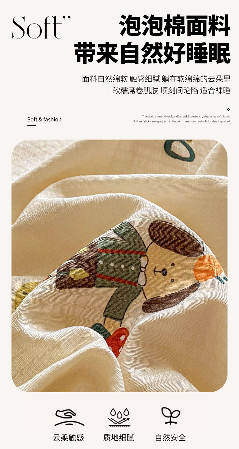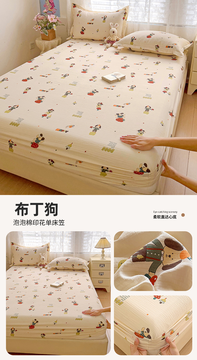 商品名称:恬澳家纺 2025新款A类印花泡泡棉床笠-场景二 布丁狗