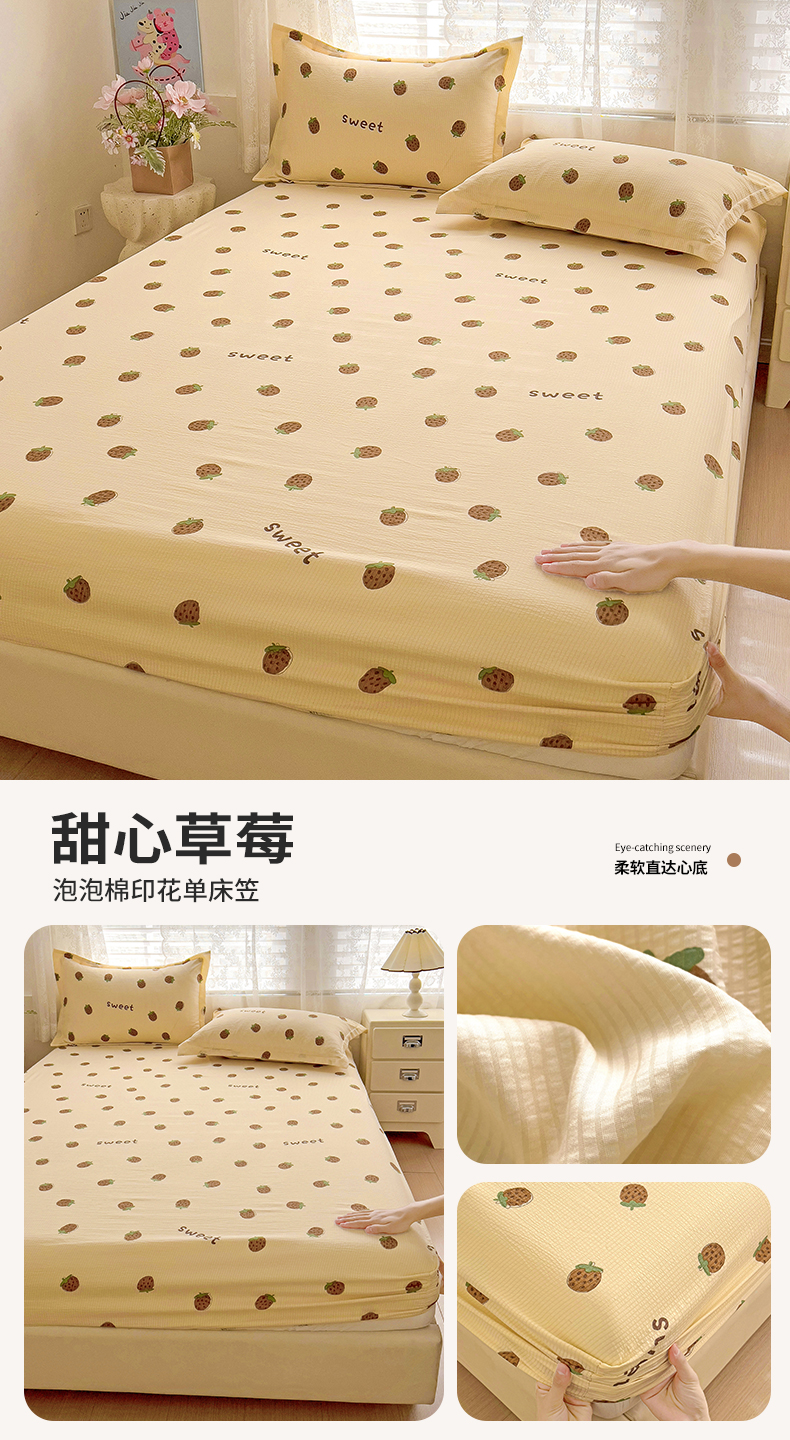 恬澳家纺 2025新款泡泡棉夹棉印花床护垫-场景二 卡洛-甜心草莓,卡洛-甜心草莓