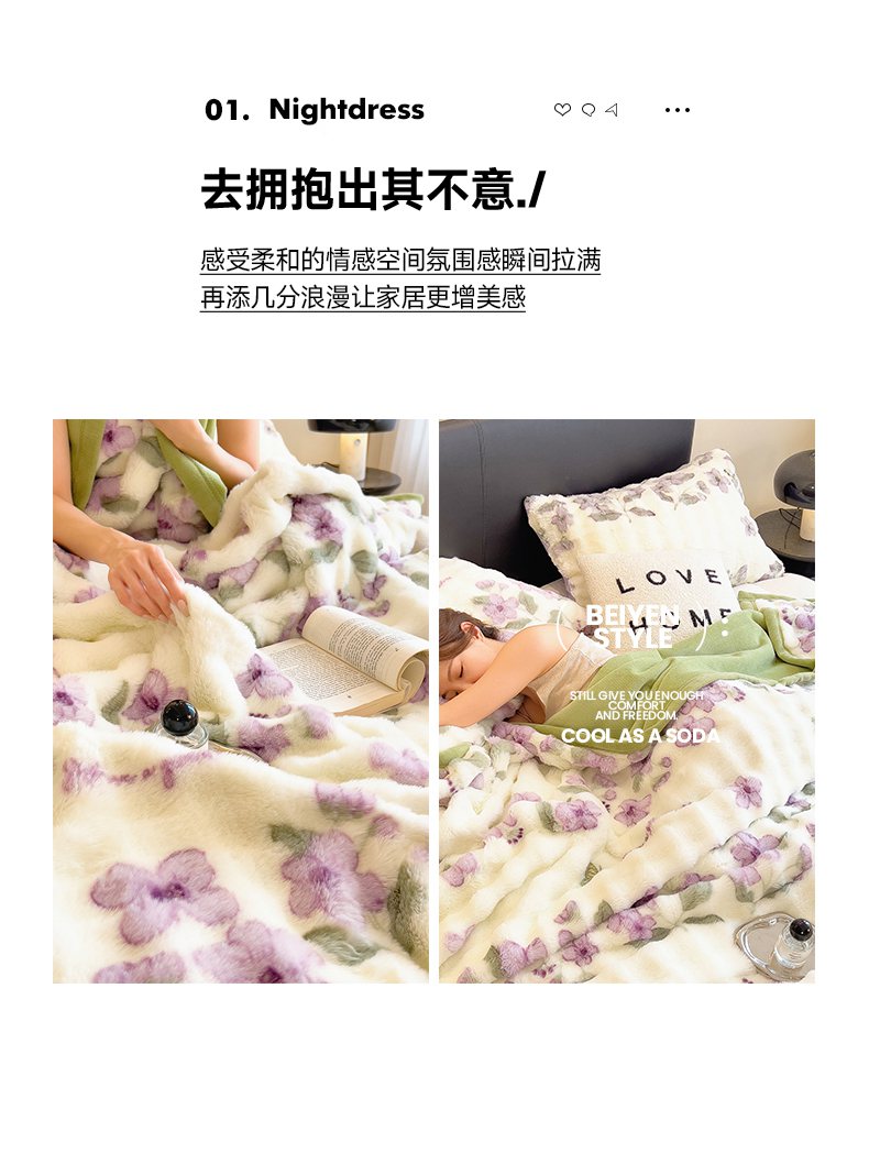 商品名称:摩妮卡 2025新款热款直播600克大泡泡兔毛复合毛毯牛奶绒 暗香紫苑
