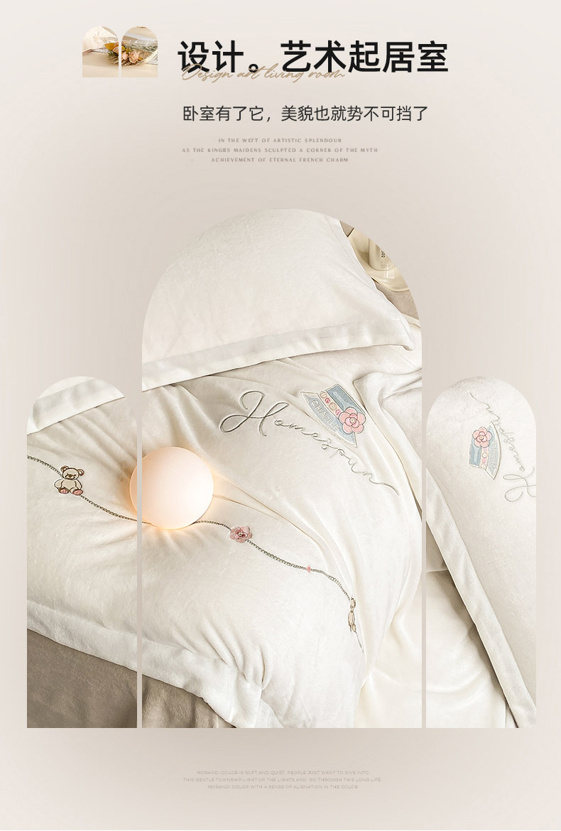 商品名称:(总)丝印良品 2025新款秋冬加厚公主日记牛奶绒四件套
