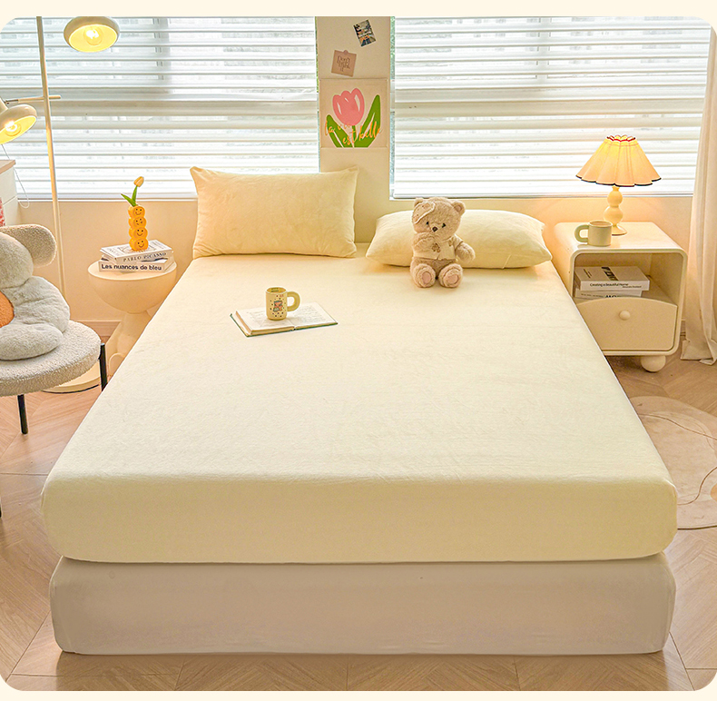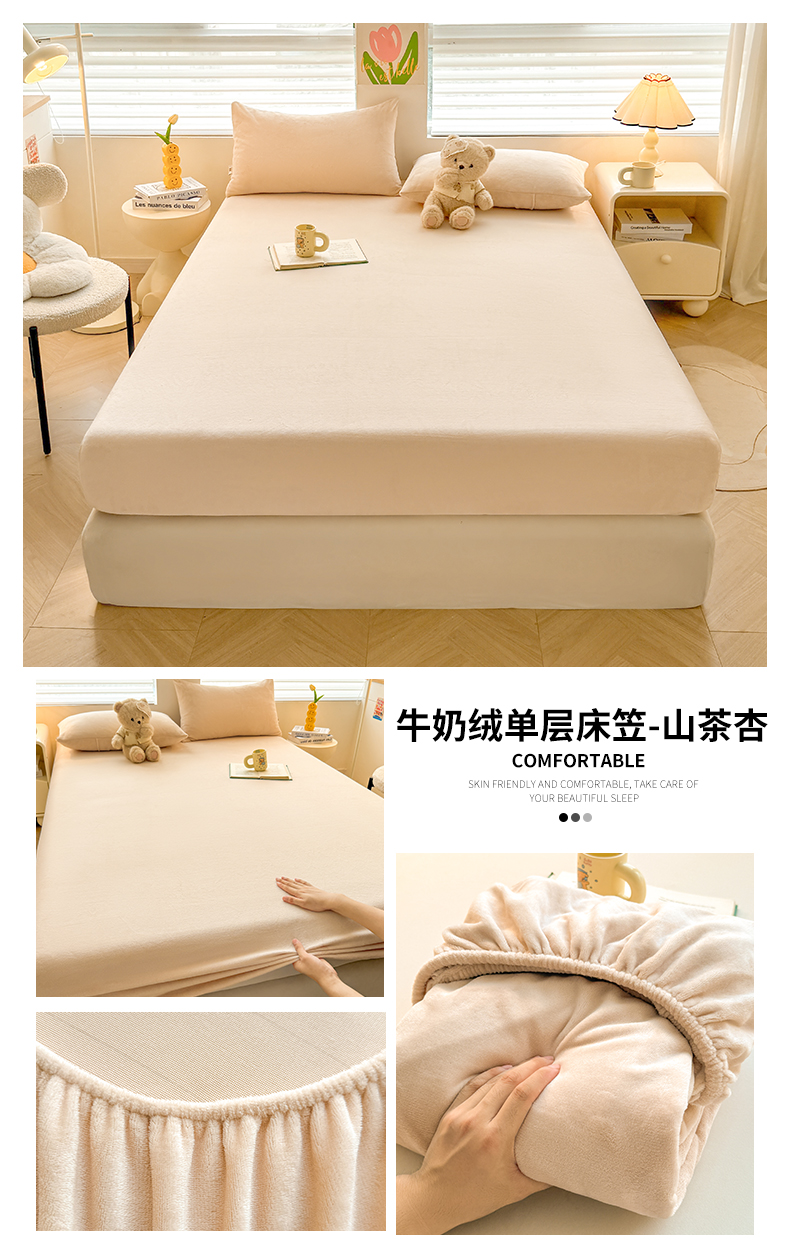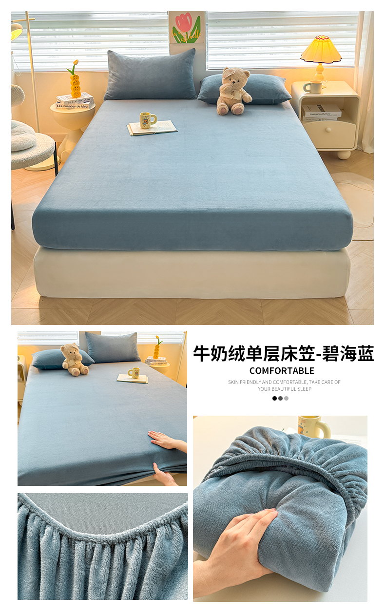 • 91家纺网 家纺一手货源 找家纺 雯豆家纺 2025新款单层高克重牛奶绒纯色床笠素色床垫保护套 牛奶绒单层床笠-雪青