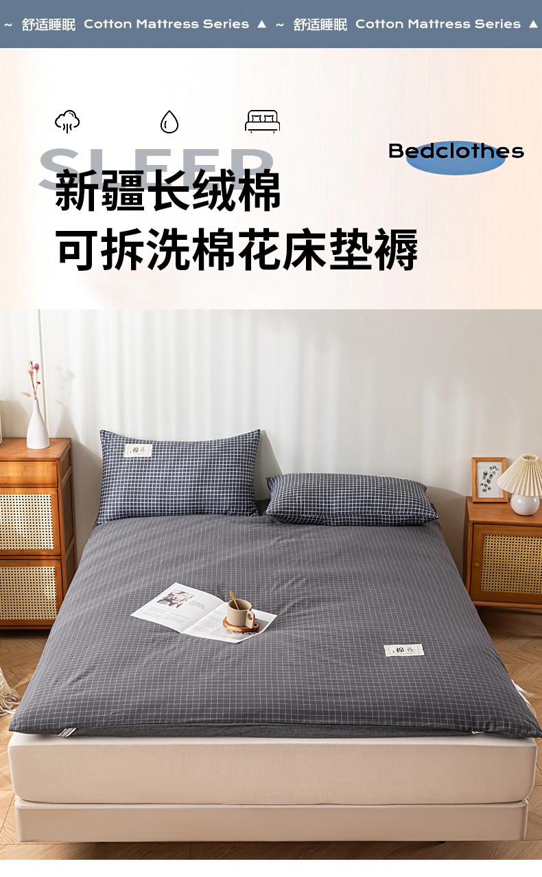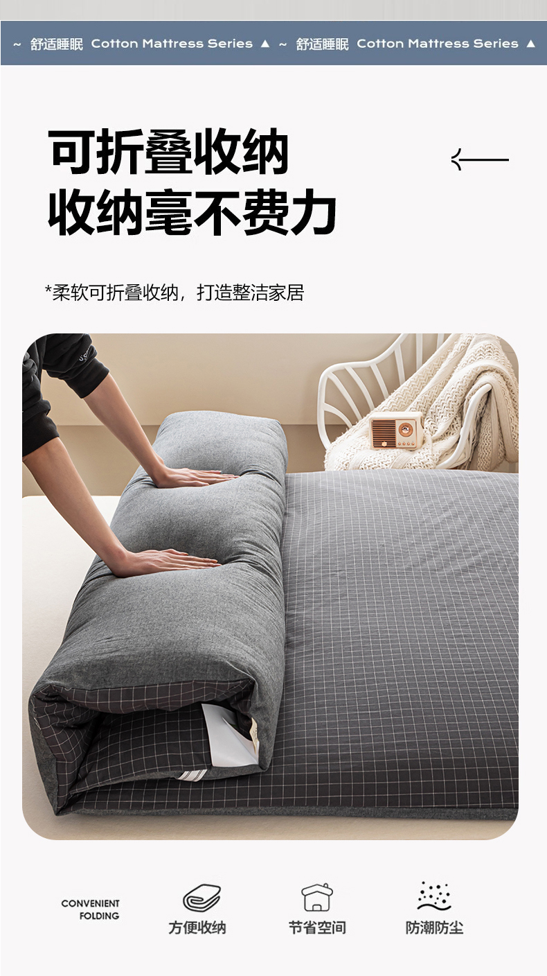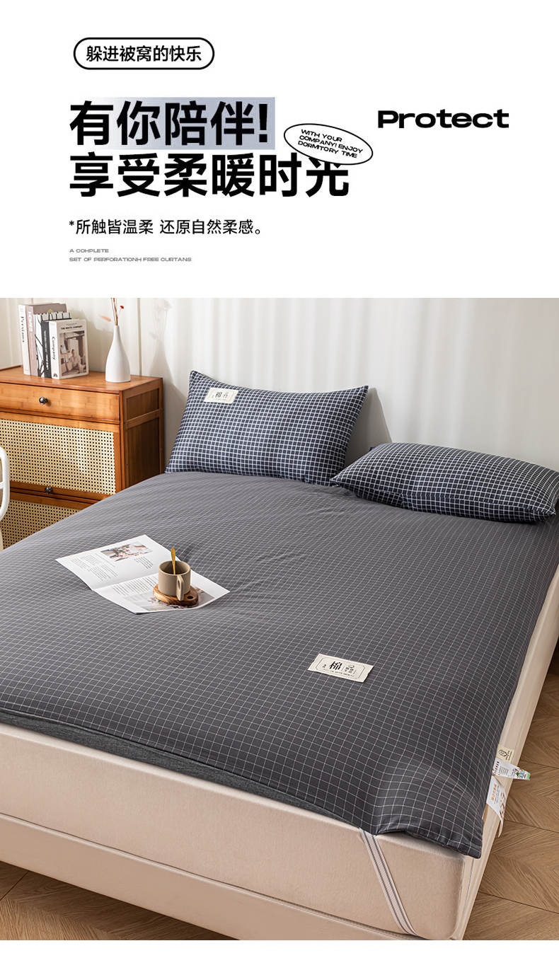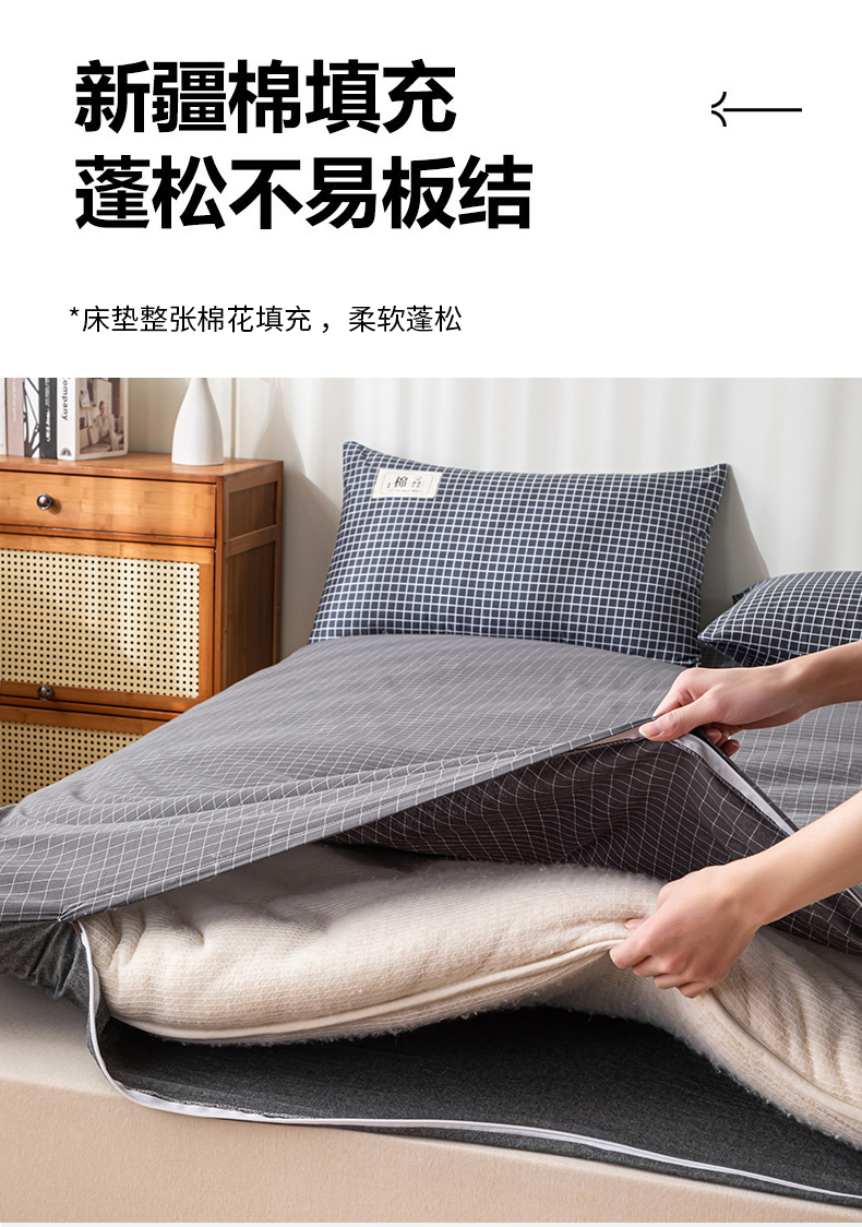 (总)悠米悠家 2025新款新疆棉花学生款可拆洗床垫,宾利兰格,高级灰格,格子控,灰色,极简绿格,简兮格,橘色小格,蓝小格,墨绿小格